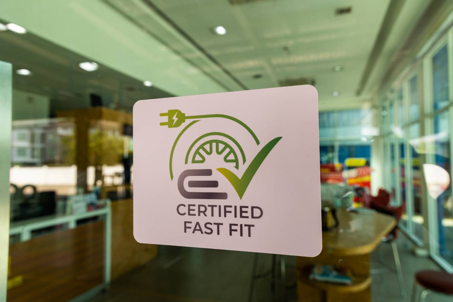 COCKPIT พร้อมสัญลักษณ์ “EV CERTIFIED FAST FIT” แสดงที่หน้าร้าน