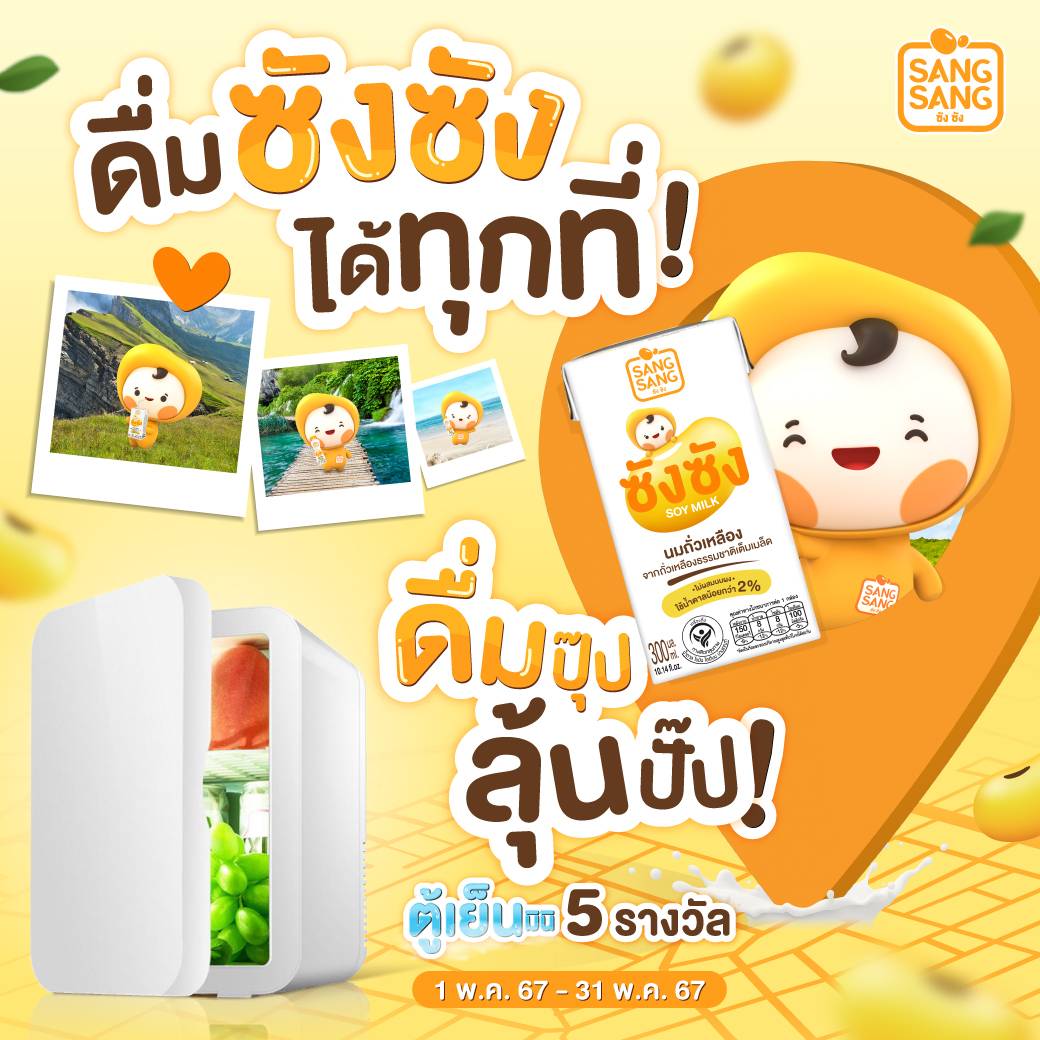 ช่วงซัมเมอร์ที่ผ่านมา “ซังซัง” นมถั่วเหลืองคั้นสด ผลิตจากเมล็ดถั่วเหลืองจากประเทศแคนาดา รสชาติอร่อย หอมมัน น้ำตาลน้อยกว่า 2% อยากรู้ว่าไปเที่ยวไหนกันมาบ้าง เพียงกดไลค์และเเชร์โพสต์ไปที่โซเชียลของคุณแบบสาธารณะ แล้วคอมเม้นต์ใต้โพสต์ด้วยรูปถ่ายทริปท่องเที่ยวล่าสุดที่ไปมา พร้อมบอกเหตุผลว่าชอบเติมพลังกับซังซังตอนไหน? ติด #ชื่อสถานที่ท่องเที่ยวที่ไป ใครรีวิวโดนใจรับรางวัล Gift Set ซังซัง พร้อมตู้เย็นมินิ จำนวน 5 รางวัล (มูลค่ารางวัลละ 990 บาท) ร่วมสนุกได้ตั้งแต่วันนี้ถึง 31 พ.ค.67 ประกาศผล 4 มิ.ย.67 ทาง FB: SangSang Soymilk รายละเอียดเพิ่มเติม https://bit.ly/3w0PQ5o