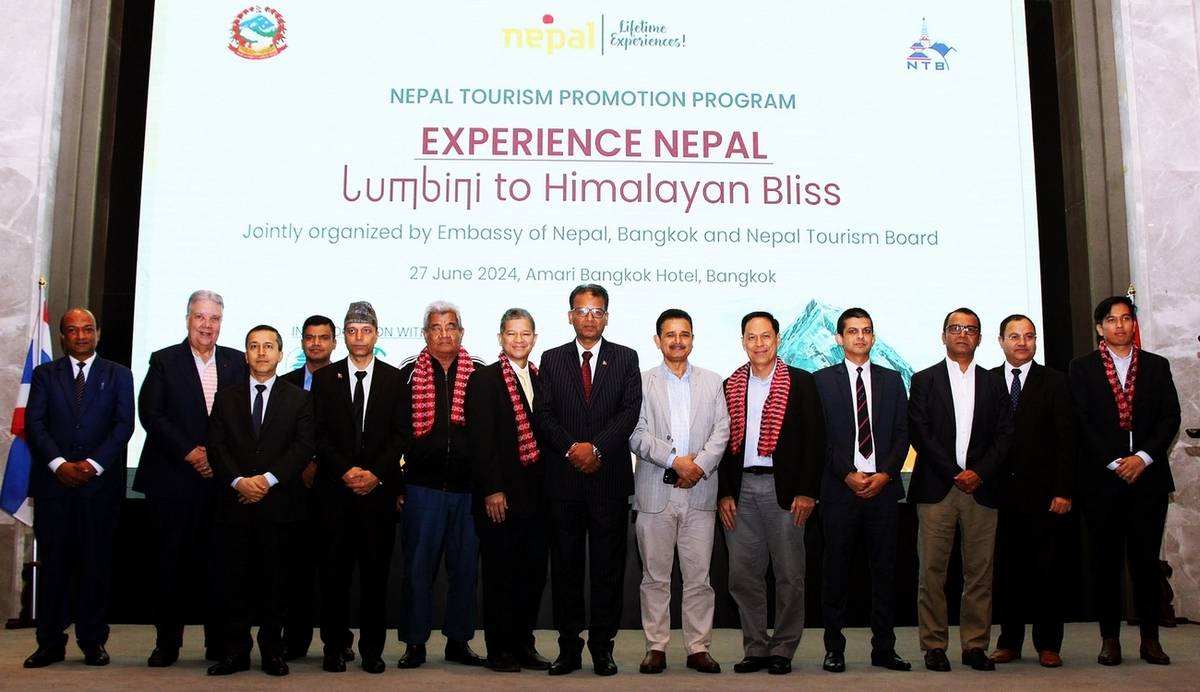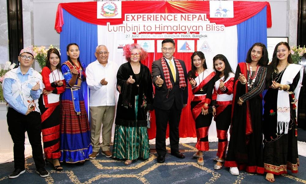 ร่วมกับคณะกรรมการการท่องเที่ยวเนปาล (NTB) และพันธมิตรจัดงานส่งเสริมการท่องเที่ยวเนปาล “Experience Nepal: Lumbini to Himalayan Bliss” เพื่อแสดงถึงศักยภาพและสถานที่ท่องเที่ยวที่สำคัญงดงาม และมีความหลากหลายของประเทศเนปาล เมื่อวันที่ 27 มิถุนายน 2567 สถานเอกอัครราชทูตสาธารณรัฐประชาธิปไตย เนปาลประจำประเทศไทย ร่วมกับคณะกรรมการการท่องเที่ยวเนปาล (NTB) สายการบินเนปาลแอร์ไลน์ สมาคมผู้ประกอบการทัวร์และการท่องเที่ยวแห่งเนปาล (NATTA) สมาคมปีนเขาเนปาล (NMA) สมาคมผู้ประกอบการ การเดินป่าแห่งเนปาล (TAAN) สมาคมผู้ประกอบการการท่องเที่ยวเนปาล (SOTTO-Nepal) สมาคมตัวแทนล่องแก่ง เนปาล (NARA) และสมาคมรถบัสท่องเที่ยวเนปาล จัดงานส่งเสริมการท่องเที่ยวเนปาล “Experience Nepal: Lumbini to Himalayan Bliss” เพื่อแสดงศักยภาพ และสถานที่ท่องเที่ยวที่หลากหลายของเนปาล