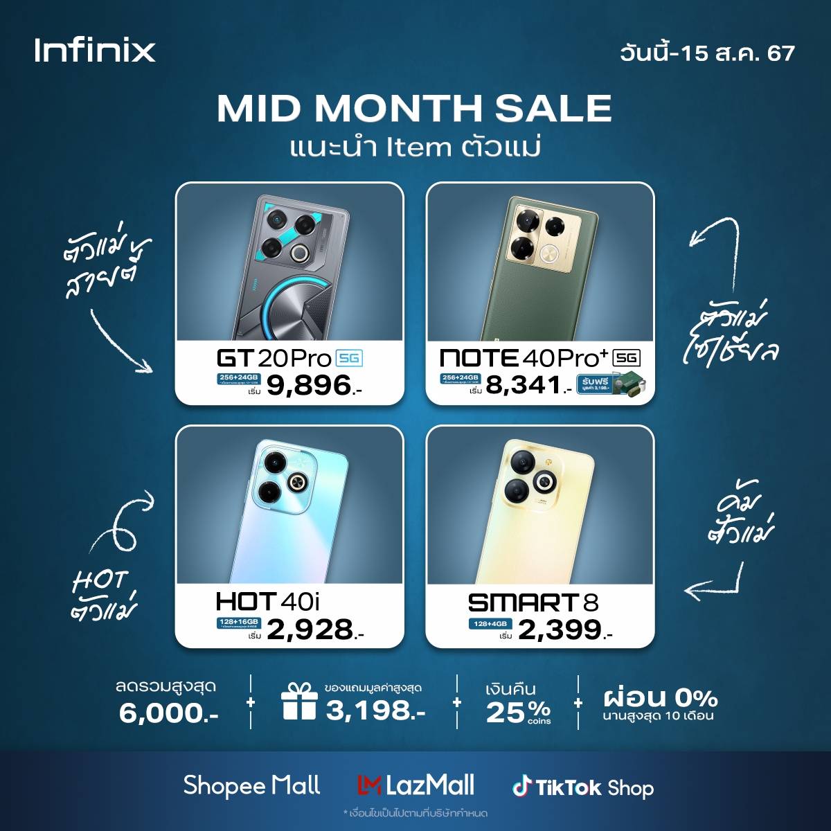 อินฟินิกซ์ อัดโปรฯ แรงกลางเดือน ขนสมาร์ทโฟนรุ่นฮิต สเปคเทพ ราคาโดน มาให้เลือกช้อป พร้อมส่วนลดจัดเต็มอีกเพียบ!