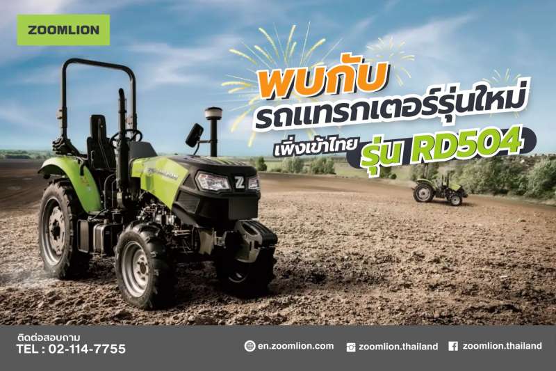 - รถแทรกเตอร์ RD504 เพิ่งนำเข้าประเทศไทยเพื่อจำหน่ายแก่กลุ่มลูกค้าเกษตรกร แทรกเตอร์เอนกประสงค์เข้าใจทุกงานเกษตรกรรม มีความสามารถในการบรรทุกของและเชื่อมต่ออุปกรณ์ต่อพ่วงได้หลากหลายทั้งการไถพรวน การปลูก การอัดฟางและการเก็บเกี่ยวด้วยเครื่องยนต์คุณภาพสูง ประหยัดน้ำมัน ขับขี่สบายและใช้งานสะดวก