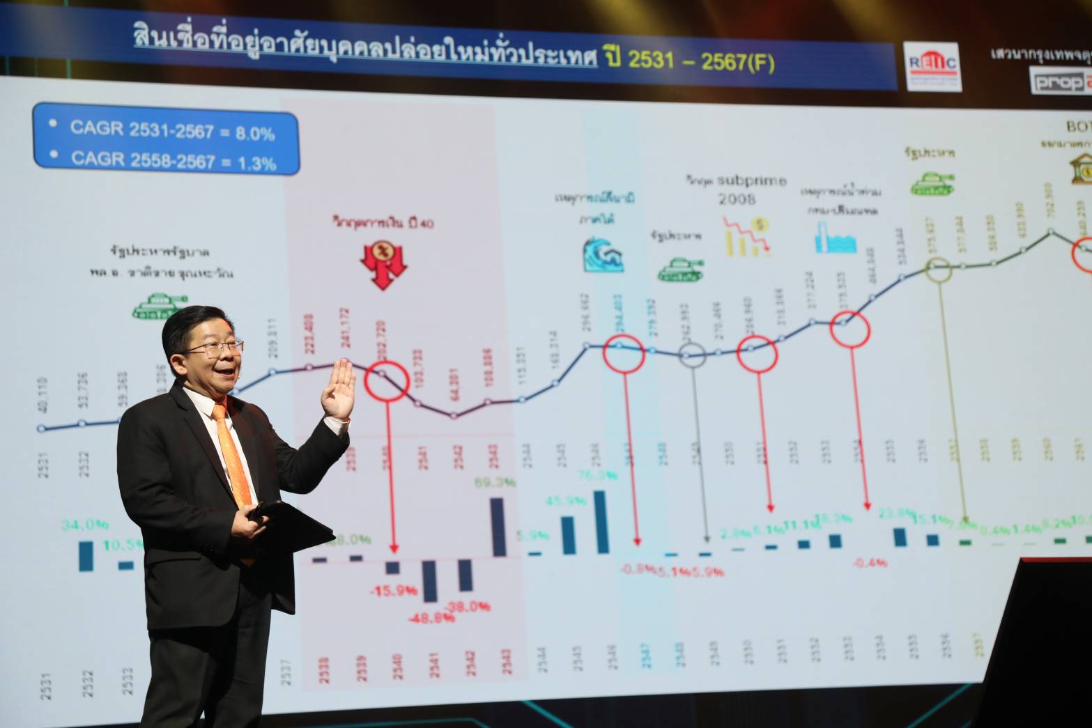 ในงานเสวนากรุงเทพจตุรทิศ : Property เจอหนี้ 10 ปี อสังหาฯไทยกลับไปไม่เหมือนเดิม ซึ่งจัดขึ้นโดย prop2morrow ผู้ประกอบธุรกิจที่ปรึกษาด้านการตลาดอสังหาริมทรัพย์ ดำเนินงานในรูปแบบเว็บไซต์ออนไลน์ www.prop2morrow.com/ เมื่อวันที่ 19 กันยายน 2567 ณ โรงละครเคแบงก์สยามพิฆเนศ มีผู้ประกอบการธุรกิจอสังหาฯชั้นนำระดับประเทศแลกเปลี่ยนข้อมูลทั้งจากหน่วยงานของภาครัฐและผู้ประกอบการภาคเอกชนมาร่วม ‘เหลียวหลัง แลหน้า’ ต่อภาคธุรกิจอสังหาริมทรัพย์ในรอบ 10 ปี ที่ผ่านมาและทิศทางภาคธุรกิจอสังหาริมทรัพย์ ซึ่งเป็นหนึ่งในเรียลเซกเตอร์ที่สำคัญต่อการขับเคลื่อนเศรษฐกิจไทย รวมถึงสิ่งที่จะเกิดในอนาคตทุกแง่มุม โดยได้รับเกียรติจากวิทยากรผู้ทรงคุณวุฒิมาร่วมกระเทาะเปลือกอสังหาริมทรัพย์