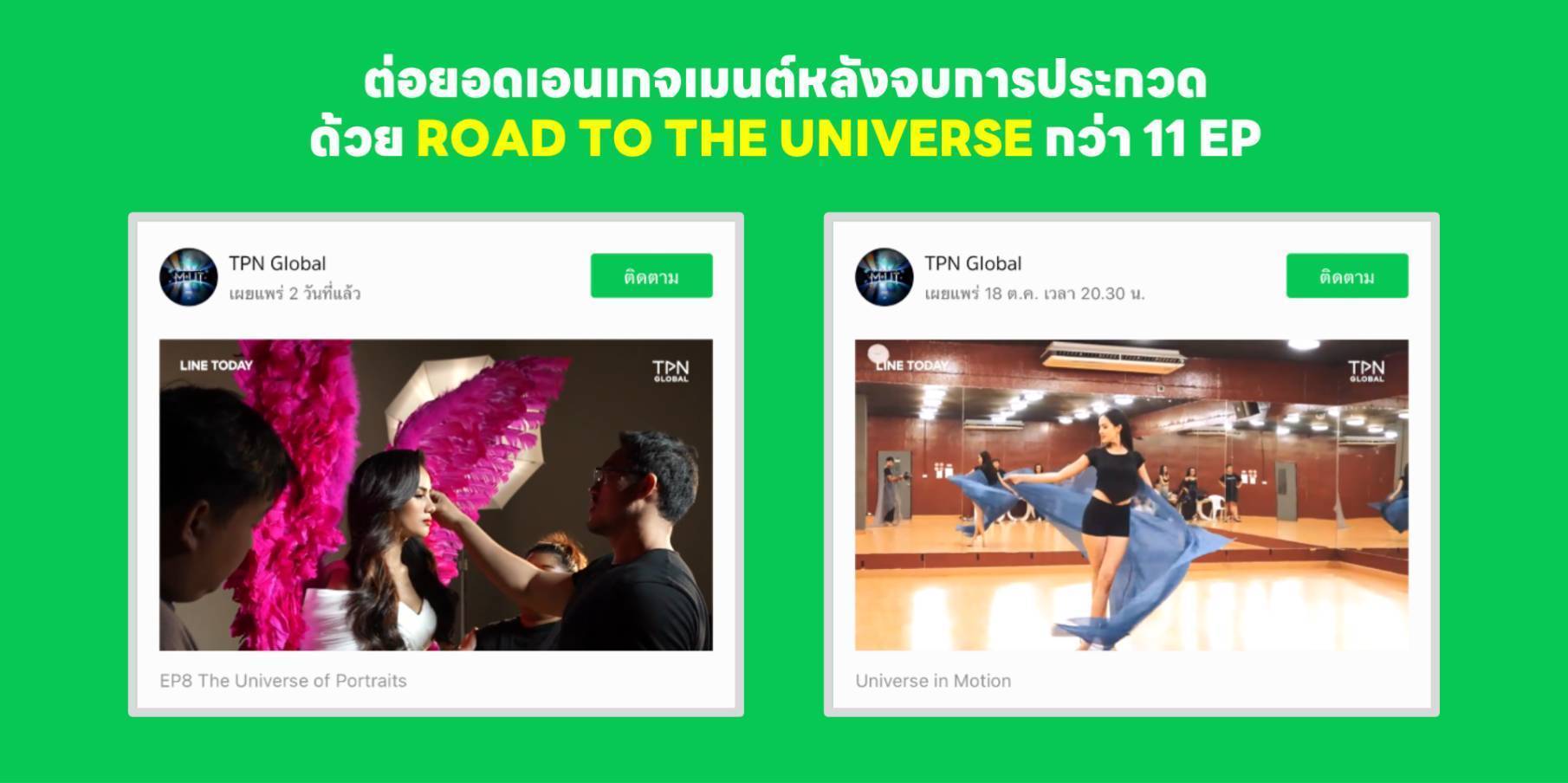 เวทีประกวดนางงามยังคงอยู่ในกระแสป๊อปคัลเจอร์ที่ได้รับความนิยมจากกลุ่มคนไทยอย่างต่อเนื่อง ซึ่งส่วนหนึ่งมาจากวิวัฒนาการรอบด้านของการประกวดนางงามในยุคปัจจุบัน ทั้งวิธีการนำเสนอ และ การสร้างเอนเกจเมนต์กับแฟน ๆ นางงามให้เกิดเป็นคอมมูนิตี้คอนเทนต์ที่เหนียวแน่น เช่นเดียวกันกับ TPN Global บริษัทเจ้าของลิขสิทธิ์เวทีประกวดนางงามและชายงามชื่อดังของประเทศไทย ซึ่งที่ผ่านมาได้ขยายความร่วมมือกับ LINE ประเทศไทย ต่อยอดความสำเร็จเวที “Miss Universe Thailand” สร้างอิมแพคการประกวดให้วงการนางงามผ่านกลยุทธ์คอนเทนต์พาร์ทเนอร์บนแพลตฟอร์มที่ครบวงจร “แฟนด้อม” พร้อมส่ง Road to The Universe ซีรีส์รายการเกาะติดช่วงเวลาสำคัญในการเตรียมตัว โอปอล-สุชาตา ช่วงศรี ก่อนบินลัดฟ้าสู่เวทีนางงามจักรวาลที่ประเทศเม็กซิโกพฤศจิกายนนี้