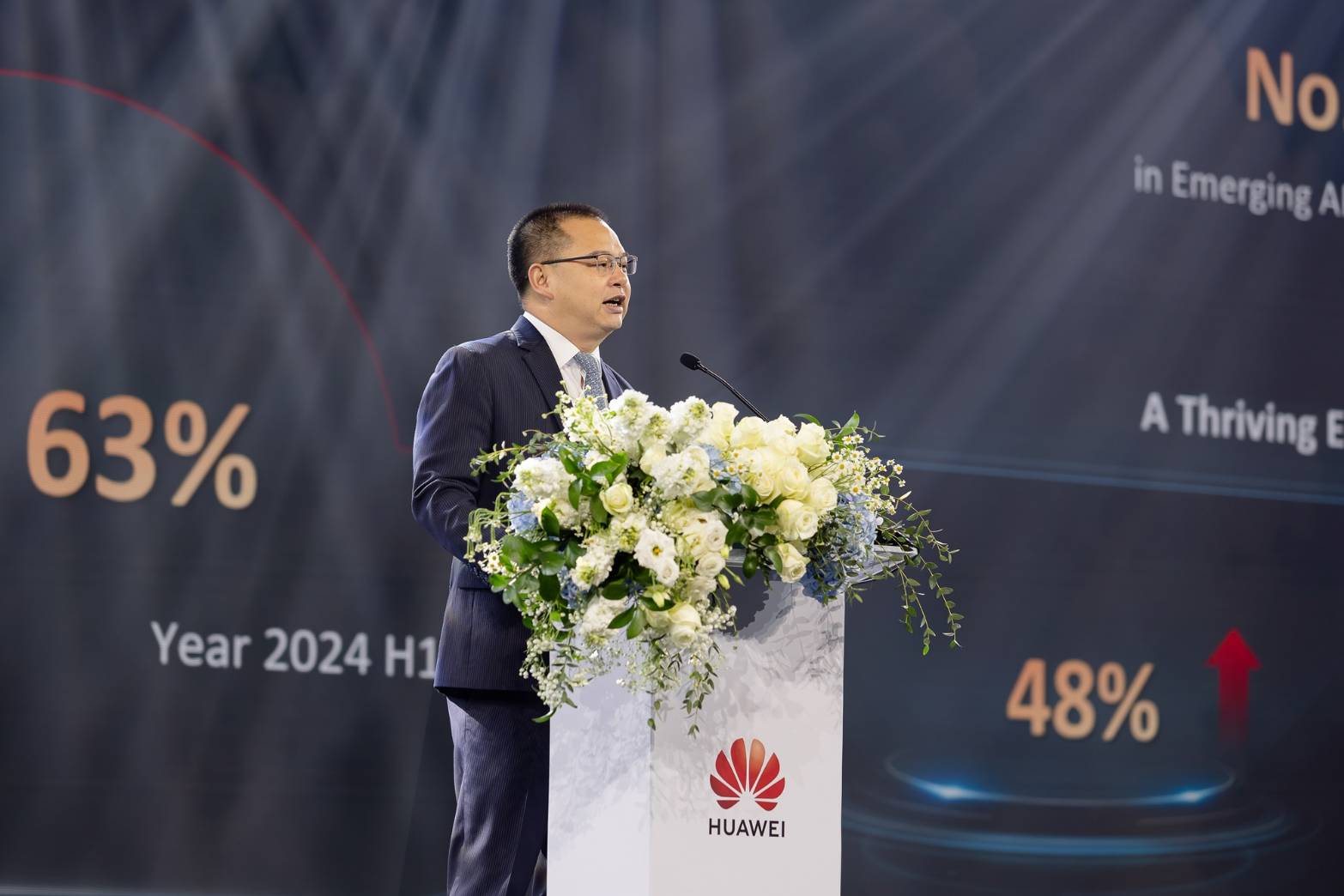 วิคเตอร์ หลัว (Victor Luo) รองประธานหัวเว่ย คลาวด์ ประเทศไทย เปิดตัว 2 โซลูชันอัจฉริยะที่ขับเคลื่อนด้วย AI ได้แก่ CloudPond และ CodeArts ในงาน Huawei Cloud Thailand Gala Dinner 2024