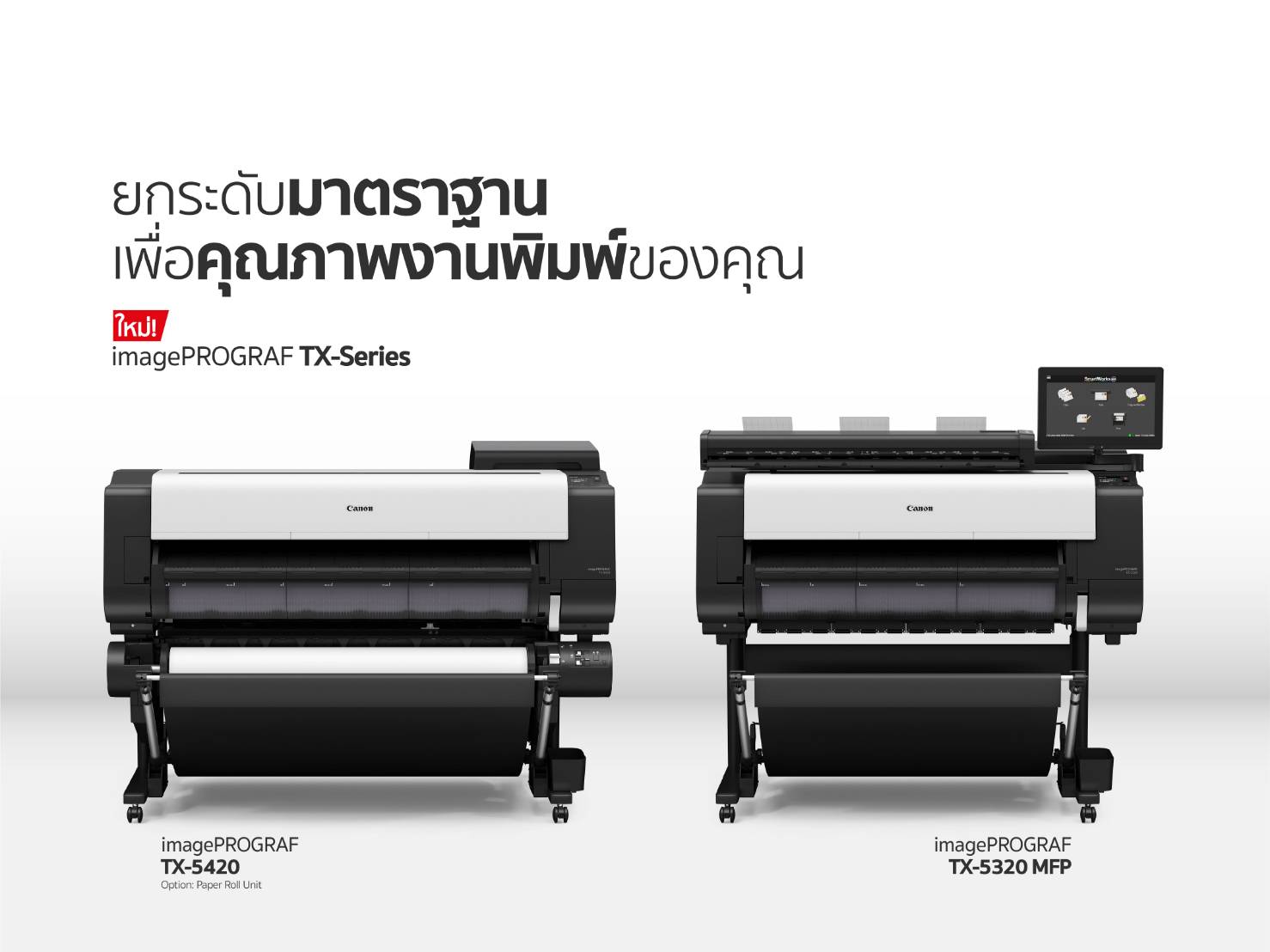 พร้อมรับทุกงานใหญ่! แคนนอน เปิดตัวเครื่องพิมพ์หน้ากว้าง 7 รุ่นใหม่ ชูนวัตกรรมสุดล้ำยกระดับคุณภาพสีและกำลังการผลิตที่ดีกว่าเดิม imagePROGRAF TZ-5320/TX-5420/TX-5320 MFP series และรุ่น imagePROGRAF TZ-5320 และ TX-5420/5320/5220 series มอบสปีดการพิมพ์ที่รวดเร็วทันใจ พร้อมรองรับการพิมพ์ปริมาณมากทั้งในธุรกิจออกแบบกราฟิก สถาปัตยกรรม วิศวกรรม และงานก่อสร้าง
