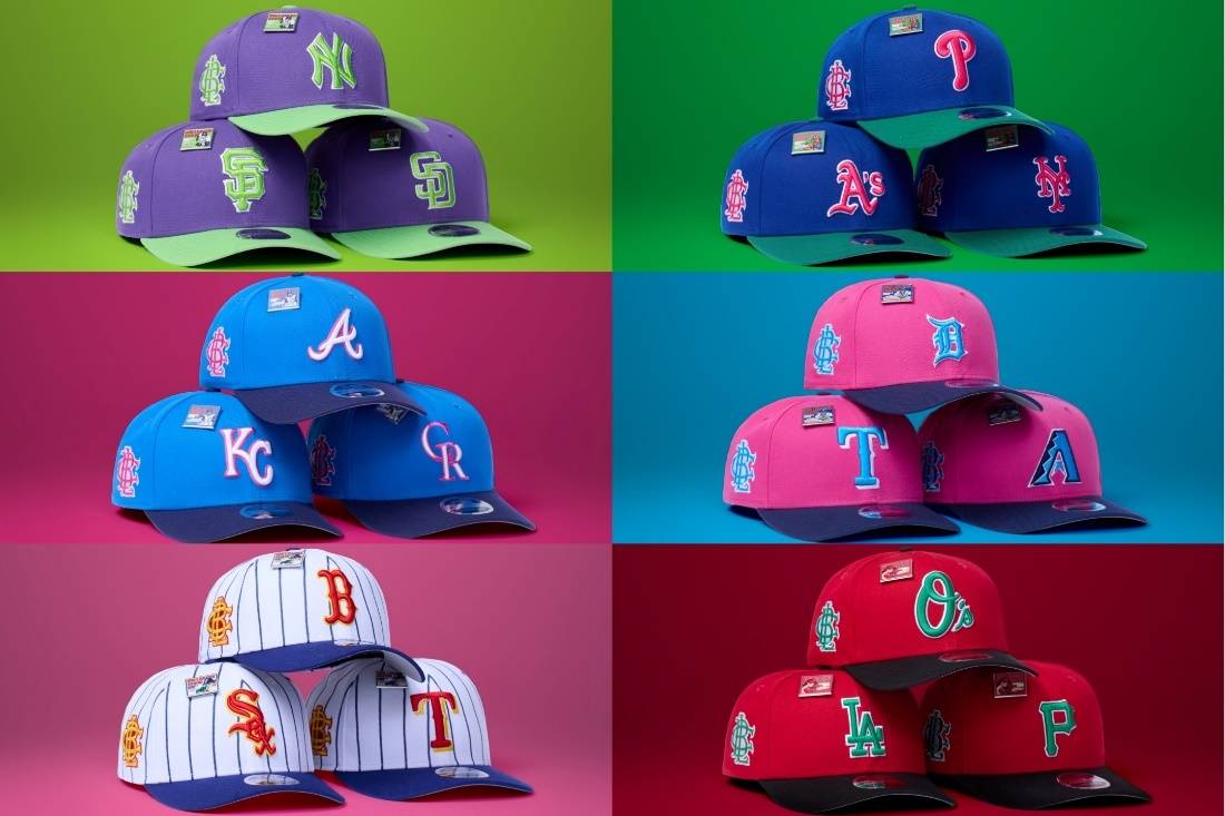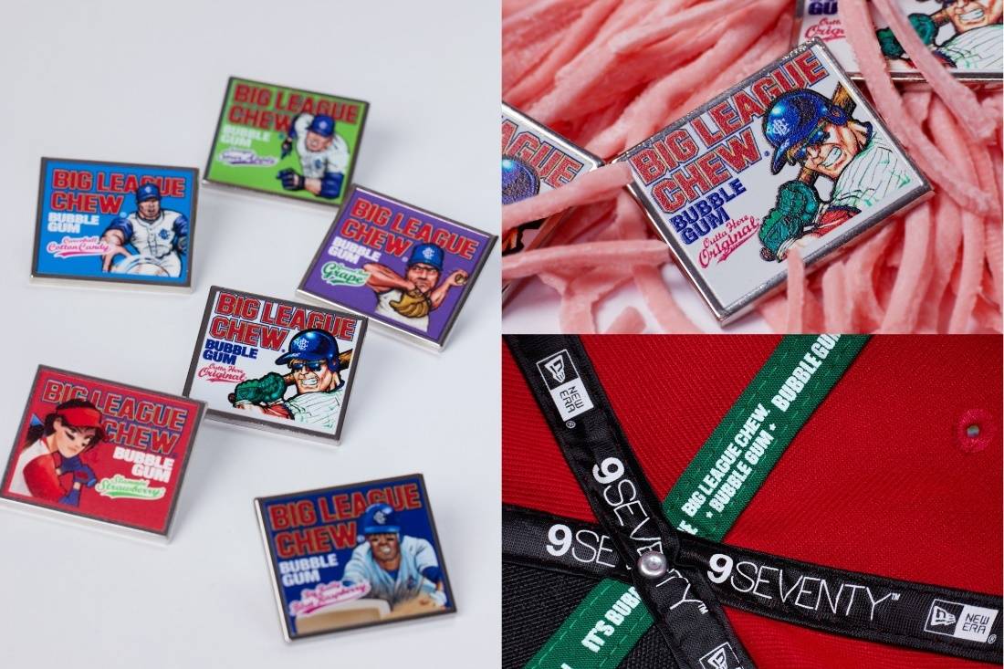 หมวกที่มาพร้อมชื่อทีมโปรด ทั้ง NEW YORK YANKEES LOS ANGELES DODGERS BOSTON RED SOX CHICAGO WHITE SOX OAKLAND ATHLETICS NEW YORK METS และ DETROIT TIGERS และเฉดสีที่หลากหลาย ไม่ว่าจะเป็น สีน้ำเงิน ม่วง ขาว แดง ชมพูเข้ม ฟ้า และ เขียว มาพร้อมกับเข็มกลัดที่ถูกดีไซน์มาจากรูปทรงของแพคเกจจิ้ง Big League Chew แบรนด์หมากฝรั่งคู่ใจสาวกเบสบอลอเมริกัน อยู่บริเวณด้านขวาของหมวก เอาใจแฟน ๆ คนรักเบสบอล แถมถูกใจนักสะสมแน่นอน