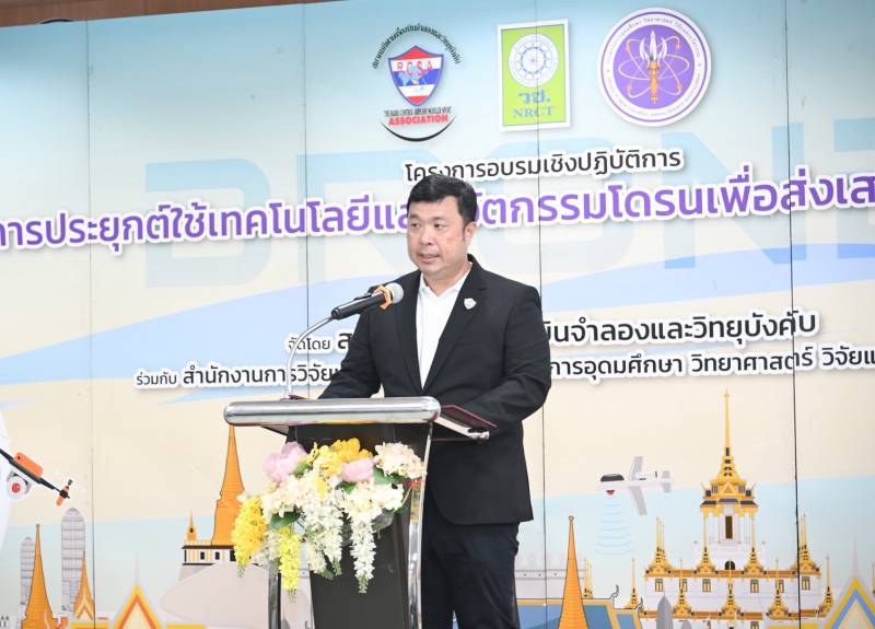 เมื่อวันที่ 13 มีนาคม 2568 สำนักงานการวิจัยแห่งชาติ(วช.) กระทรวงการอุดมศึกษา วิทยาศาสตร์ วิจัยและนวัตกรรม ร่วมกับ หอการค้าจังหวัดระยอง วิทยาลัยเทคนิคระยอง และสมาคมกีฬาเครื่องบินจำลองและวิทยุบังคับ จัดการอบรมเชิงปฏิบัติการในหัวข้อ “การประยุกต์ใช้เทคโนโลยีและนวัตกรรมโดรนเพื่อส่งเสริมการท่องเที่ยว ภาคตะวันออก ครั้งที่ 1” โดยมี ดร.วิภารัตน์ ดีอ่อง ผู้อำนวยการสำนักงานการวิจัยแห่งชาติ เป็นประธานในพิธี พร้อมนี้ นายกิตติพงค์ อุตตมะเวทิน ผู้อำนวยการวิทยาลัยเทคนิคระยอง นายทินกร ลาวัณย์เสถียร ประธานหอการค้าจังหวัดระยอง กล่าวต้อนรับ และ นายพิศิษย์ มิตรเกื้อกูล นายกสมาคมกีฬาเครื่องบินจำลองและวิทยุบังคับ กล่าวรายงาน พร้อมด้วยคณะผู้บริหาร สื่อมวลชน และผู้เข้าร่วมอบรม ณ วิทยาลัยเทคนิคระยองจังหวัดระยอง