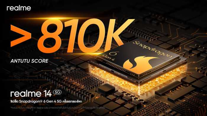 realme 14 5G ชูความโดดเด่นด้วยการเป็นสมาร์ตโฟนรุ่นแรกของโลกที่ติดตั้งชิปประมวลผลระดับเรือธงแห่งปีอย่าง Snapdragon 6 Gen 4 ที่มีคะแนน AnTuTu สูงถึง 810000 และผลิตบนโครงสร้างระดับ 4nm ที่ประหยัดพลังงานขั้นสุด พร้อมให้แบตเตอรี่ความจุมากถึง 6000mAh พร้อมระบบชาร์จไว 45W เพื่อมอบประสบการณ์การเล่นเกมที่ไหลลื่นและยาวนานขึ้นอย่างชัดเจน นอกจากนี้ เกมเมอร์ยังสามารถผู้ยังสามารถปรับเฟรมเรตสูงที่ 90Hz สำหรับการรันเกมชั้นนำอย่าง Free Fire ให้ได้ประสิทธิภาพสูงสุด เพื่อเพิ่มความได้เปรียบในการแข่งขันด้วยภาพที่ไหลลื่นสวยงามไร้ความหน่วง รวมถึงการตอบสนองต่อการสัมผัสหน้าจอที่รวดเร็วแม่นยำ และการทำงานที่เสถียรต่อเนื่อง