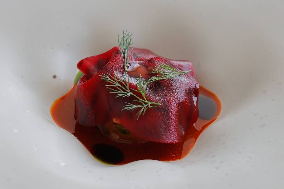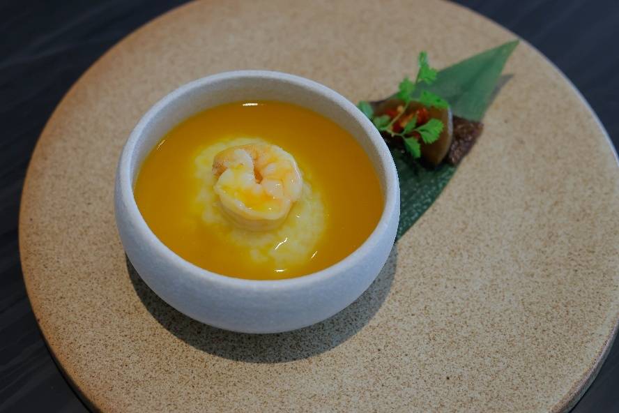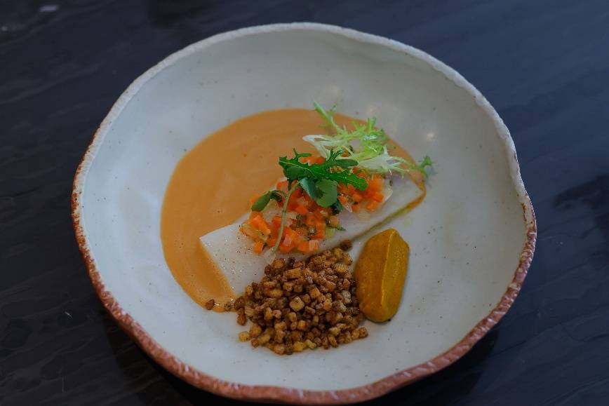 มุมมองที่ยอดเยี่ยมจริงๆบอกเล่าถึงความเป็นนวัตกรรมที่ส่วนประกอบของแบรนด์ที่รังสรรค์ออกมาเป็นคอร์สไฟน์ไดนิ่งส่วนผสมพรีเมียมผ่านขั้นตอนการปฏิบัติอย่างทั่วถึงและเทคนิคเฉพาะตัวของเหล่าเชฟเสิร์ฟเป็นฟูลคอร์สเมนูในรสชาติอันลึกลึก จานเรียกน้ำย่อย (อาหารเรียก น้ำย่อย ) จานที่เสนอรสชาติ และสืบสวนของเนื้อพริก และบีทรูท นำเสนอครั้งแรกที่เปิดตัวความอยากทราบประวัติความเป็นมาของอาหาร จาน ซุป (Soup) ที่พิจารณาเป็นข้าวบาร์เลย์กุ้งต่อด้วย อองเทร ( Entrée ) เสิร์ฟปลาชาร์นึ่ง ด้วยการใช้ฟังก์ชั่น Vacusine ของตู้อบอเนกประสงค์จาก V-ZUG ในส่วนของแคร์รอตและอาหารสำหรับรสสัมผัสอันละละมุนไมเป็นเวลานานๆถึง จาน หลัก (หลัก) ย่างด้วยข้าวเหนียวสมุนไพรโดยกรรมวิธีย่างในเตาอบพัดลม 230 และเครื่องมาห่อรอบข้าวเหนียวที่นึ่งไอน้ำด้วยอุณหภูมิ 65 จานสืบสวนความนุ่มและความชุ่มฉ่ำเต็มรสชาติแบบเอเชียปิดท้ายมื้ออาหารด้วย ขนมหวาน (ของหวาน) ในชื่อ “Texture” ให้รสชาติที่ดื่มด่ำกับสมชื่อ เครื่องดื่มเมอแรงก์มะพร้าว มะม่วง และตะไคร้ ควบคุมเมนูได้ถ่ายทอดความเหนือชั้นของเทคโนโลยีที่รองรับเครื่องใช้ไฟฟ้าของ V- ZUG และการนึ่งอันเที่ยงตรงส่วนการย่างด้วยอุณหภูมิต่ำที่ประสิทธิภาพและไร้ประสิทธิภาพในการควบคุมที่บ้านด้วยนวัตกรรมการควบคุมจากแบรนด์ V-ZUG