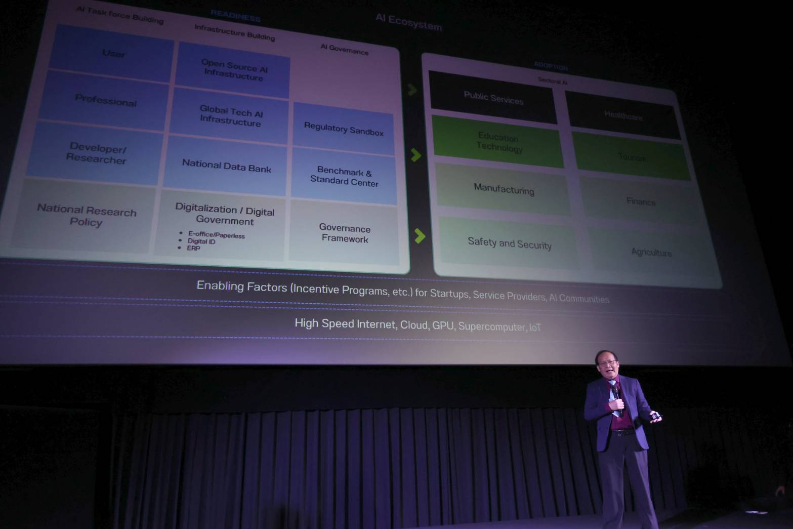 ภาครัฐ โดย ดร.ศักดิ์ เสกขุนทด จาก ETDA ภาคสาธารณสุข โดย นพ.ปิยะฤทธิ์ อิทธิชัยวงศ์ จากโรงพยาบาลศิริราช และภาคธุรกิจที่ปรึกษา โดย นายพชร อารยะการกุล จาก บลูบิค กรุ๊ป บทสรุปที่ตกผลึกจากเวทีนี้คือ ประเทศไทยต้อง “เลือกสนามรบที่ใช่” โดยไม่มุ่งที่การแข่งขันสร้างโมเดลพื้นฐาน (Foundation Models) เพื่อแข่งกับบริษัทยักษ์ใหญ่ของโลก แต่ควรมุ่งเน้นไปที่การพัฒนา “โมเดลเฉพาะทาง” (Customized/Specialized Models) ซึ่งเปรียบเสมือน “ขุมทอง” ที่ไทยมีโอกาสชนะ เพราะสามารถนำข้อมูลบริบทไทยมาสร้างความได้เปรียบที่คู่แข่งระดับโลกไม่มี แนวทางนี้สอดคล้องกับหลักการ “อธิปไตยทาง AI” ที่ ดร.ศักดิ์ ย้ำว่าคือความมั่นคงของชาติ ไม่ใช่แค่เรื่องศักดิ์ศรี