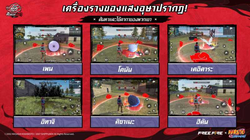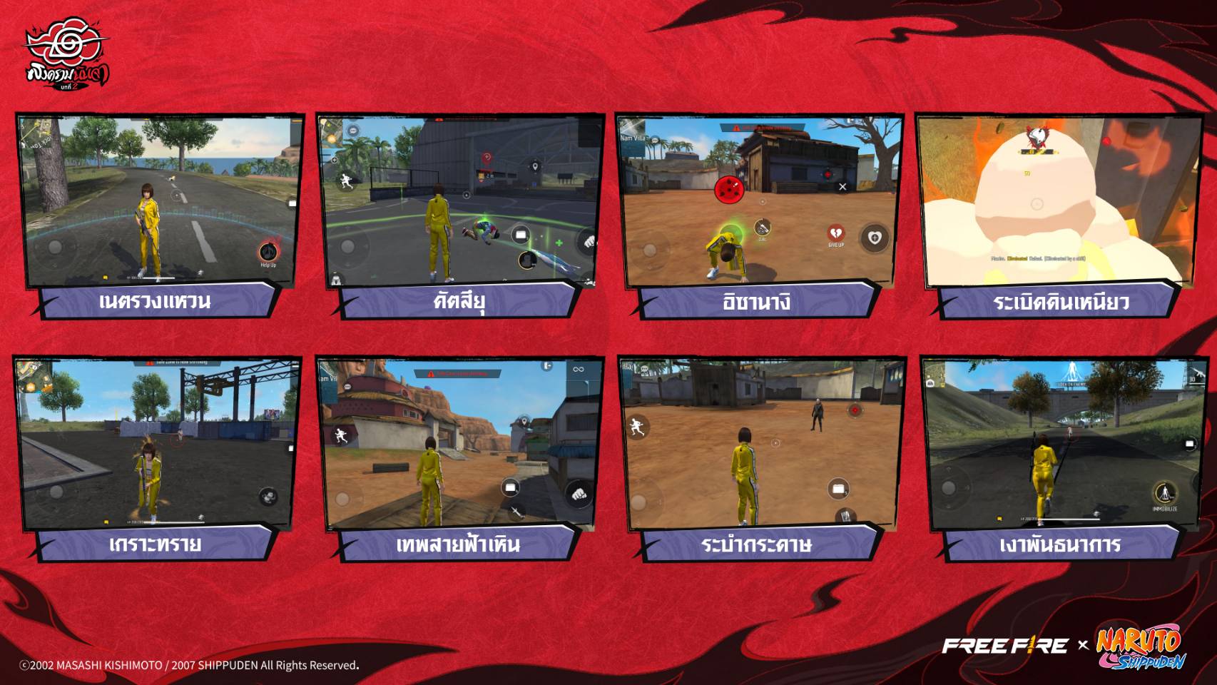 ตั้งแต่วันที่ 30 กรกฎาคม ถึง 31 สิงหาคม เหล่าแฟน ๆ จะได้สัมผัสโลกของฟีฟายในธีม NARUTO SHIPPUDEN อย่างเต็มรูปแบบ ฝึกฝนศิลปะการต่อสู้นินจาขนานแท้ และสนุกกับฟีเจอร์เกมเพลย์ใหม่ที่เร้าใจกว่าเดิม พร้อมคอนเทนต์ใหม่ที่จะปล่อยทุกสัปดาห์ และการอัปเดตที่ยิ่งใหญ่ที่สุดเท่าที่เคยมีมาในการร่วมมือของฟีฟาย โดย Free Fire x NARUTO SHIPPUDEN บทที่ 2: สงครามนินจา จะมอบประสบการณ์ที่สดใหม่และน่าติดตามตลอดทั้งกิจกรรม อาทิ โอกาสในการประลองฝีมือในโหมดพิเศษ “หมาป่าคาถานินจา (Ninjutsu: Lone Wolf)” ซึ่งเป็นการดวลแบบ 1v1 สุดเข้มข้น ที่ให้ผู้เล่นใช้ไอเทมและสกิลจากโลกของนารูโตะได้อย่างเต็มที่ รวมไปถึง พลัง คาถานินจาสุดคลาสสิกที่แฟน ๆ คิดถึงที่จะกลับมาอีกครั้ง พร้อมกลยุทธ์และพลังเสริมสุดโดดเด่นที่คุ้นเคย