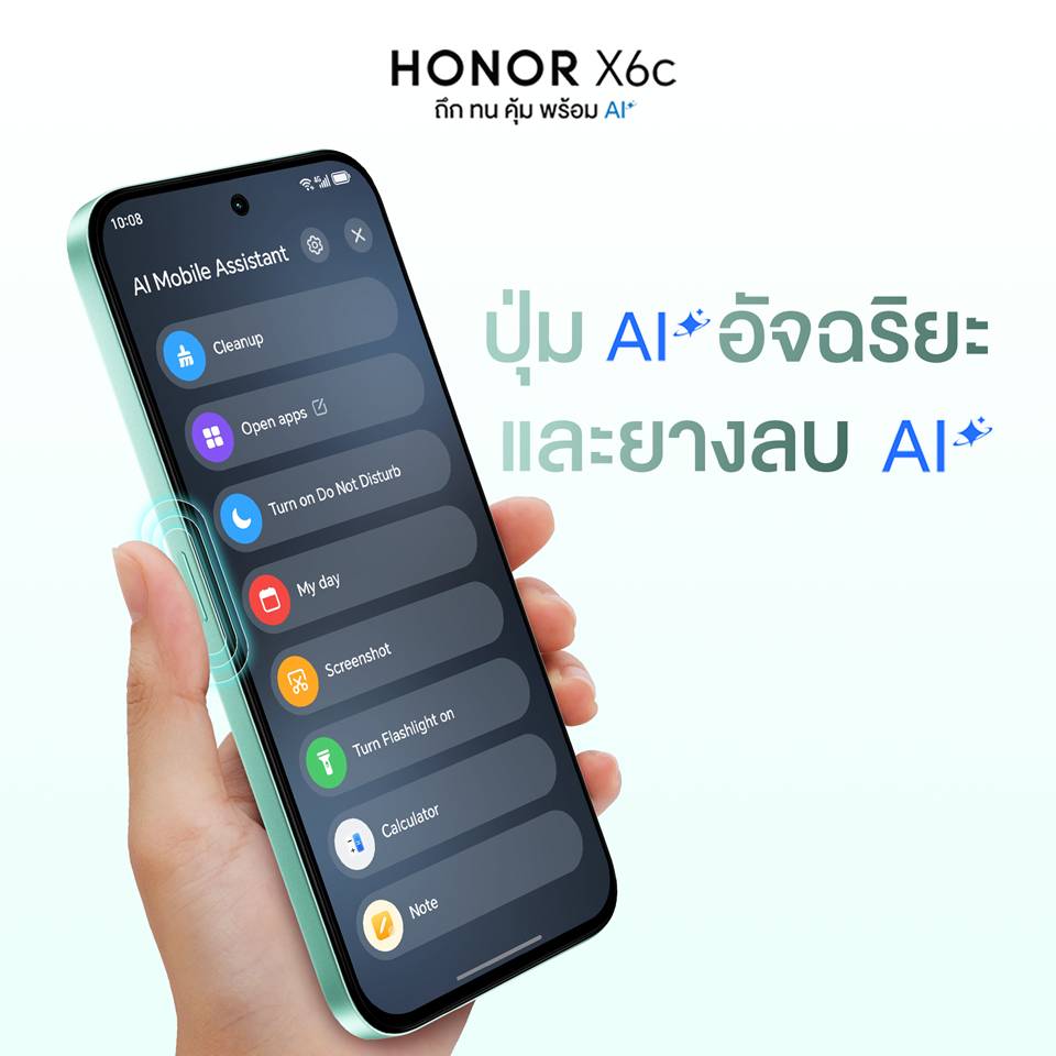 เปิดตัว HONOR X6c ถึก ทน คุ้ม พร้อม AI แบตเตอรี่อึดใช้งานได้เต็มวัน เจ้าเดียวที่ให้ Ai ในราคา 4000 บาท เริ่มขาย 12 สิงหาคมนี้!