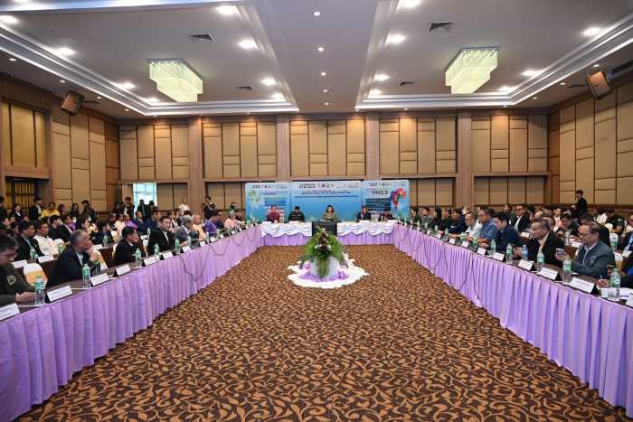 ศาสตราจารย์ ดร.สนิท อักษรแก้ว ประธานกรรมการด้านสังคม สิ่งแวดล้อม และสุขภาพ และคณะกรรมการอำนวยการแผนงานเป้าหมายสำคัญตามยุทธศาสตร์ ววน. ดร.วีระศักดิ์ โควสุรัตน์ ประธานคณะกรรมการส่งเสริมแผนงานเป้าหมายสำคัญ ด้าน PM 2.5 รองศาสตราจารย์ ดร.สุจริต คูณธนกุลวงศ์ ผู้อำนวยการแผนงาน “น้ำมั่นคง ไม่ท่วม ไม่แล้ง ใน 10 จังหวัด” นางสาวเสาวนีย์ มุ่งสุจริตการ รองผู้อำนวยการสำนักงานการวิจัยแห่งชาติ พร้อมด้วยผู้บริหารส่วนจังหวัดน่าน และจังหวัดแพร่ ผู้บริหาร วช. ผู้แทนหน่วยงานภาครัฐ ภาคเอกชน เครือข่ายชุมชน นักวิจัย และสื่อมวลชน เข้าร่วม ณ ห้องประชุมคอนเวนชั่น โรงแรม ดิ อิมเพรส น่าน จังหวัดน่าน