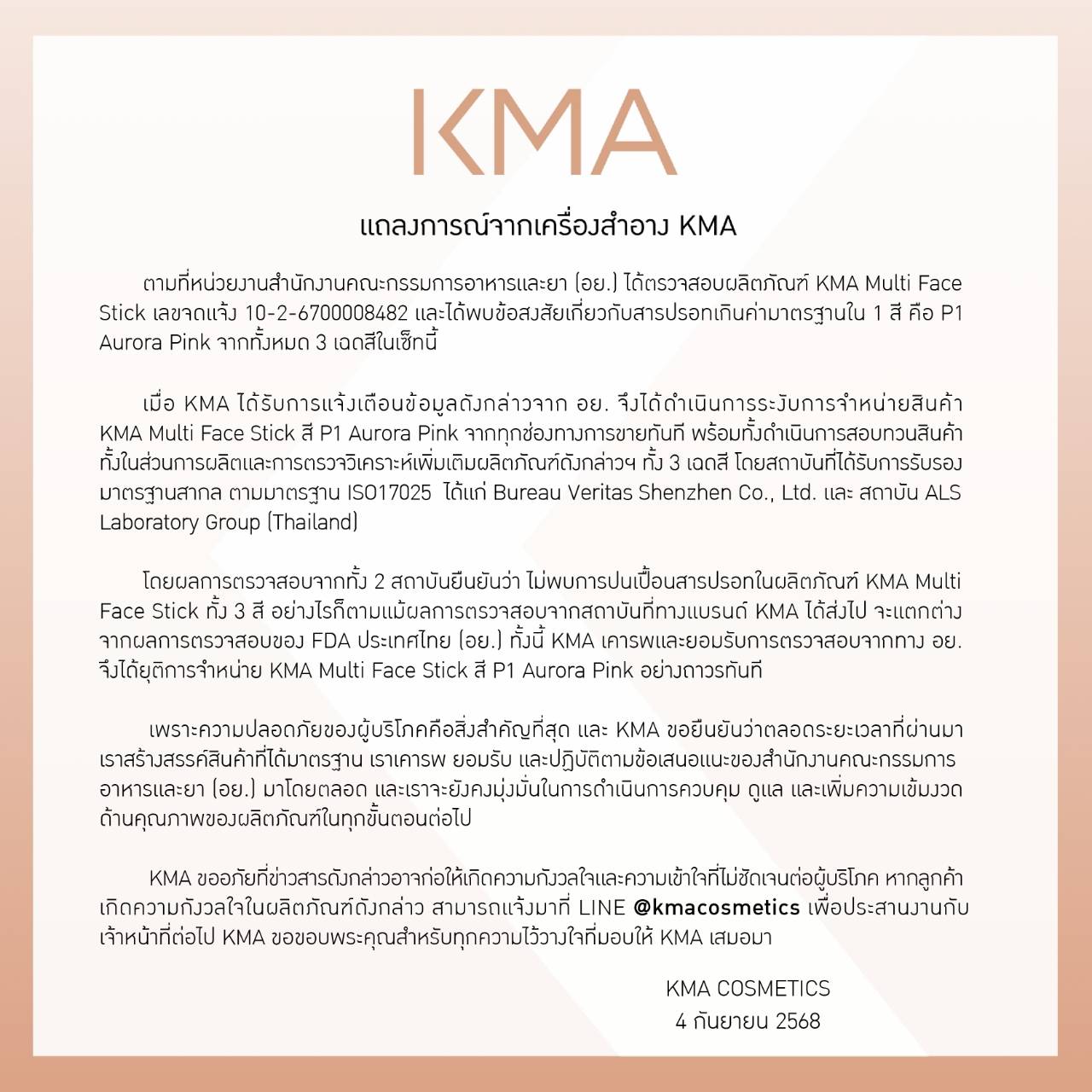 แถลงการณ์จากเครื่องสำอาง KMA