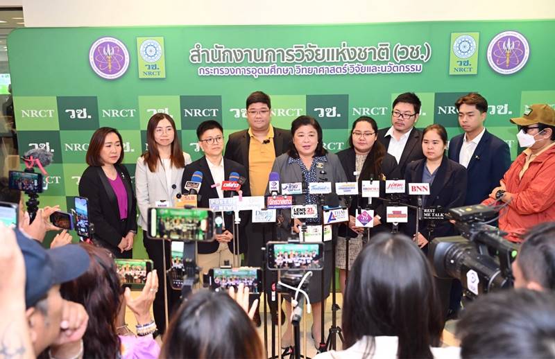 วันที่ 22 กันยายน พ.ศ. 2568 สำนักงานการวิจัยแห่งชาติ(วช.) กระทรวงการอุดมศึกษา วิทยาศาสตร์ วิจัยและนวัตกรรม จัดงานแถลงข่าวเปิดตัวนักวิจัยรุ่นใหม่ที่ได้รับการคัดเลือกจาก วช. เข้าร่วมงาน STS forum 2025 “Science and Technology in Society Forum Young Leaders Program 2025” โดยมี ดร.วิภารัตน์ ดีอ่อง ผู้อำนวยการสำนักงานการวิจัยแห่งชาติ เป็นประธานในการแถลงข่าว พร้อมด้วยคณะนักวิจัยและคณะผู้บริหาร วช. เข้าร่วมกิจกรรม ณ ศูนย์ข้อมูลสารสนเทศกลางด้านวิทยาศาสตร์ วิจัยและนวัตกรรมของประเทศ อาคาร วช. 8