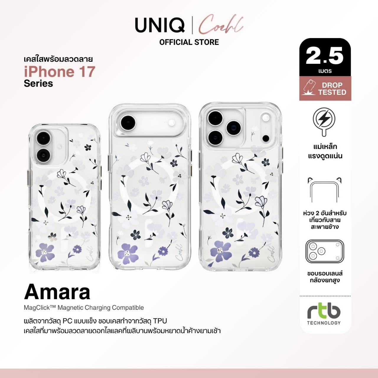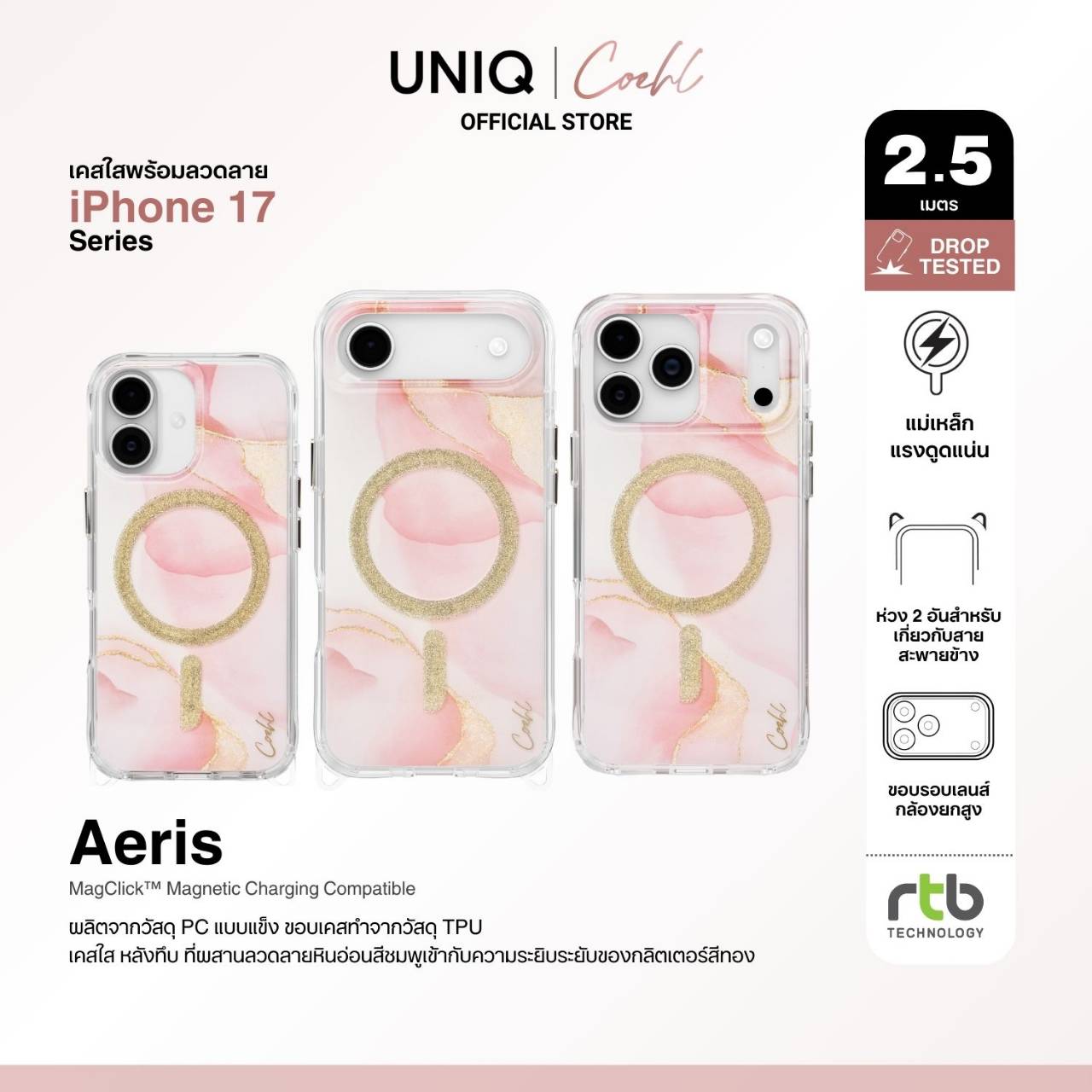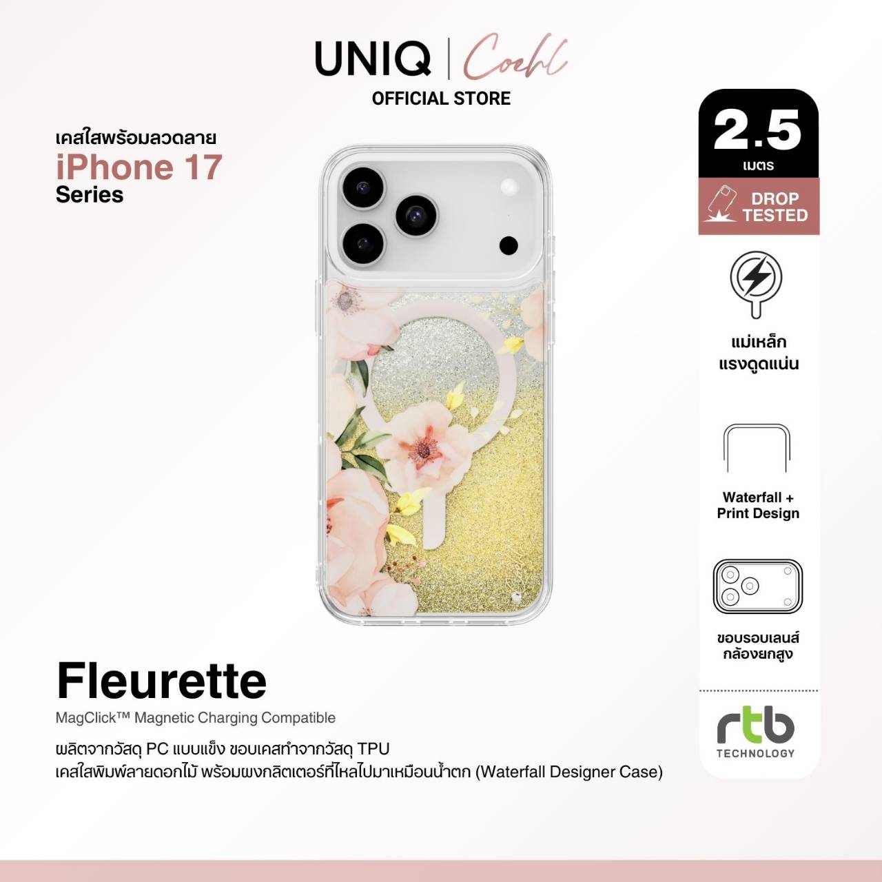 บริษัท อาร์ทีบี เทคโนโลยี จำกัด ผู้นำเข้าและจัดจำหน่ายสินค้าแกดเจ็ตรายใหญ่ในประเทศไทย เดินหน้าสร้างประสบการณ์แฟชั่นที่ผสานเทคโนโลยีอย่างมีสไตล์ ด้วยการเปิดตัวเคสคอลเลกชันใหม่สำหรับ iPhone 17 Series จากแบรนด์ COEHL แบรนด์ในเครือของ UNIQ ที่ออกแบบมาเพื่อผู้หญิงยุคใหม่ที่มีหลากหลายบทบาทในแต่ละวัน ทั้งการทำงาน ท่องเที่ยว และใช้ชีวิตในแบบของตนเอง โดยดีไซน์ของ COEHL ได้รับแรงบันดาลใจจากธรรมชาติ ผสานลวดลายและเท็กซ์เจอร์ที่เรียบง่าย ละมุน แต่เต็มไปด้วยเอกลักษณ์ โดยในคอลเลกชันนี้ประกอบด้วยเคสทั้งหมด 5 แบบ ได้แก่ เคสใสที่มาพร้อมลวดลาย (IML Designer Cases) เคสใสที่ผสมเรซินและกลิตเตอร์เป็นเนื้อเดียวกับตัวเคส (Resin Designer Cases) เคสน้ำตกกลิตเตอร์ (Waterfall Designer Case) เคสหนังวีแกนสุดหรู และเคสซิลิโคนดีไซน์มินิมอล ตอบโจทย์ผู้ใช้งานที่ต้องการทั้งดีไซน์ที่โดดเด่นและการปกป้องที่เหนือระดับ