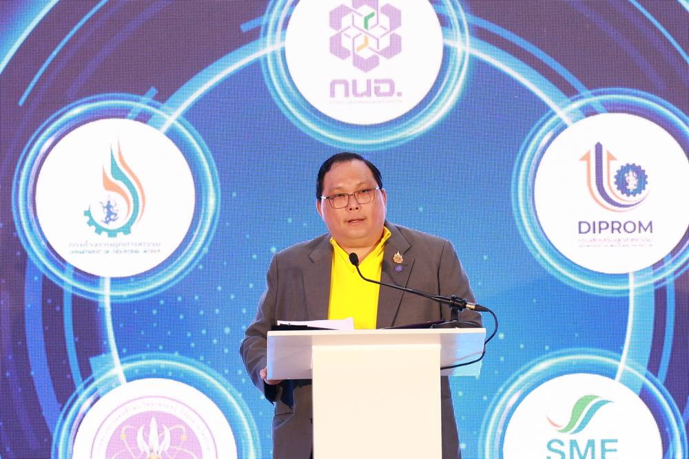 นายณัฐพล รังสิตพล ปลัดกระทรวงอุตสาหกรรม เปิดเผยว่า ปัจจุบันเศรษฐกิจและสังคมไทยเผชิญความเปลี่ยนแปลงรอบด้าน ทั้งการแข่งขันระดับโลก ความก้าวหน้าทางเทคโนโลยี และความท้าทายด้านสิ่งแวดล้อม ส่งผลต่อการอยู่รอดและการเติบโตของวิสาหกิจขนาดกลางและขนาดย่อม (SMEs) ซึ่งเป็นกำลังหลักในการสร้างงานและขับเคลื่อนเศรษฐกิจฐานราก กระทรวงอุตสาหกรรมจึงเดินหน้านโยบาย “Mind as One” การรวมพลังหัวใจเดียวกัน ผ่านความร่วมมือกับหน่วยงานในสังกัดและพันธมิตรเชิงกลยุทธ์ เพื่อสนับสนุนผู้ประกอบการในทุกมิติ ตั้งแต่การสร้างองค์ความรู้ การเชื่อมโยงเครือข่าย ไปจนถึงการผลักดันนโยบายที่เอื้อต่อการลงทุนและการเติบโตอย่างยั่งยืน