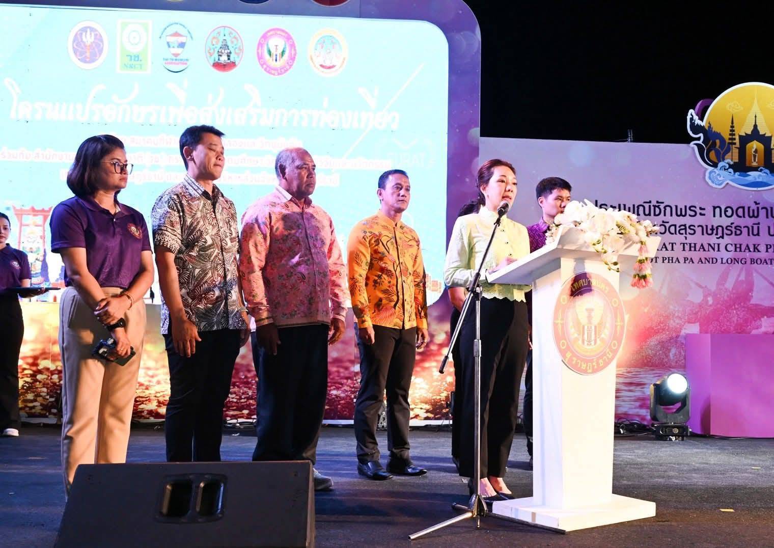 ดร.วิภารัตน์ฯ กล่าวเพิ่มเติมว่า “ขอแสดงความชื่นชมกับทุกภาคส่วนที่ร่วมกันจัดกิจกรรมนี้ขึ้น เพื่อส่งเสริมมรดกทางวัฒนธรรมและการท่องเที่ยวในงานประเพณีชักพระ และแข่งเรือยาว จังหวัดสุราษฎร์ธานี ประจำปี 2568 อย่างเป็นทางการ ขอให้ค่ำคืนนี้เต็มไปด้วยความประทับใจ ความภาคภูมิใจในมรดกทางวัฒนธรรมของเรา และแรงบันดาลใจจากการส่งเสริมด้วยนวัตกรรม”