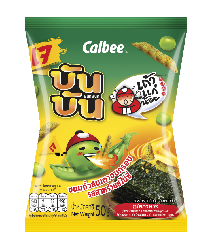 บันบัน รสสาหร่ายสไปซี่ คือขนมที่ผสานความหอมมันของถั่วลันเตาเข้ากับรสชาติสาหร่ายสไปซี่