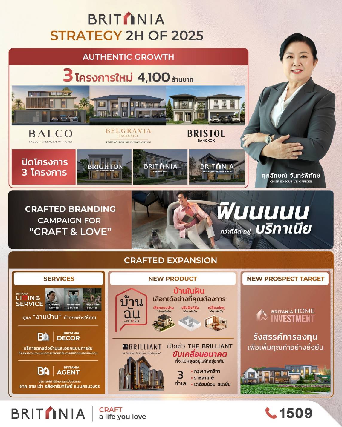 “บริทาเนีย” เดินหน้าเติบโตอย่างต่อเนื่องในครึ่งปีหลัง ตอกย้ำความเป็นผู้นำด้านการพัฒนาโครงการที่อยู่อาศัยแนวราบ ด้วยแนวทางการดำเนินงานที่ตอบโจทย์ทุกความต้องการของลูกค้าอย่างตรงกลุ่ม ผ่าน 3 แกนหลักสำคัญ ได้แก่ AUTHENTIC GROWTH STRATEGY CRAFTED BRANDING CAMPAIGN FOR “CRAFT&LOVE” และ CRAFTED EXPANSION ซึ่งสะท้อนถึงวิสัยทัศน์ขององค์กรที่ก้าวข้ามกรอบเดิม มุ่งสร้างโอกาสใหม่แห่งการเติบโต และขยายฐานลูกค้าอย่างยั่งยืน