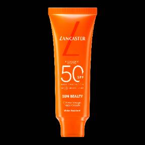 Sun Beauty Face Cream SPF50: นวัตกรรมการผลิตภัณฑ์กันแดดสำหรับผิวหน้าอันเป็นเอกลักษณ์ของแลงคาสเตอร์ ที่เหนือกว่าการปกป้องรังสียูวีทั่วไป ด้วยการปกป้องครอบคลุมทุกช่วงคลื่น² พร้อมส่วนผสม Tan Activator Complex ช่วยให้ผิวแทนดูโกลว์สวย พร้อมปกป้องและฟื้นฟูผิวจากการเกิดริ้วรอยก่อนวัยจากแสงแดด