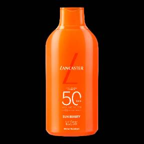 Sun Beauty Body Milk SPF50: ผลิตภัณฑ์กันแดดสำหรับผิวกาย เนื้อสัมผัสบางเบา ไม่เหนียวเหนอะหนะ ให้การปกป้องผิวจากแสงแดดที่ครอบคลุมมากขึ้นถึง 10 เท่า³ ด้วยเทคโนโลยีขั้นสูงของแลงคาสเตอร์ พร้อมมอบความชุ่มชื้นและความเปล่งประกายอย่างเป็นธรรมชาติ