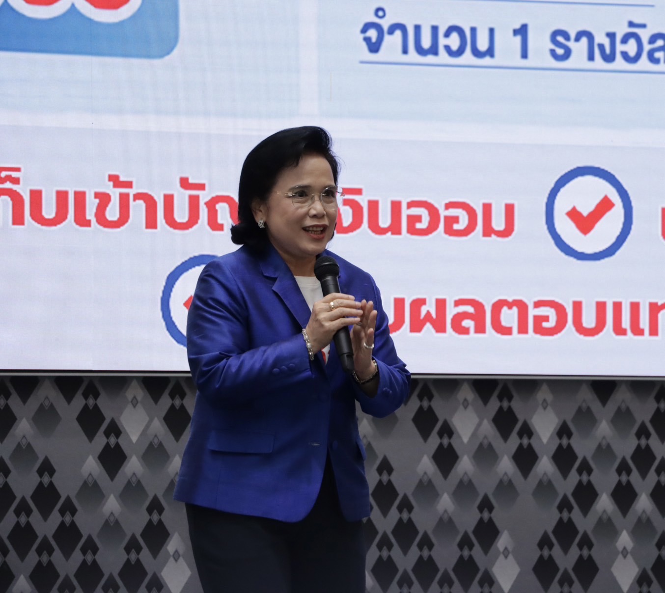 เรามุ่งมั่นที่จะสนับสนุนการออมในรูปแบบใหม่ ที่ไม่เพียงสร้างความมั่นคงทางการเงินในอนาคต แต่ยังเติมความสนุกให้กับการออมในทุกวันศุกร์ ภายใต้แนวคิด ‘ศุกร์ได้ลุ้น สุขได้ออม’