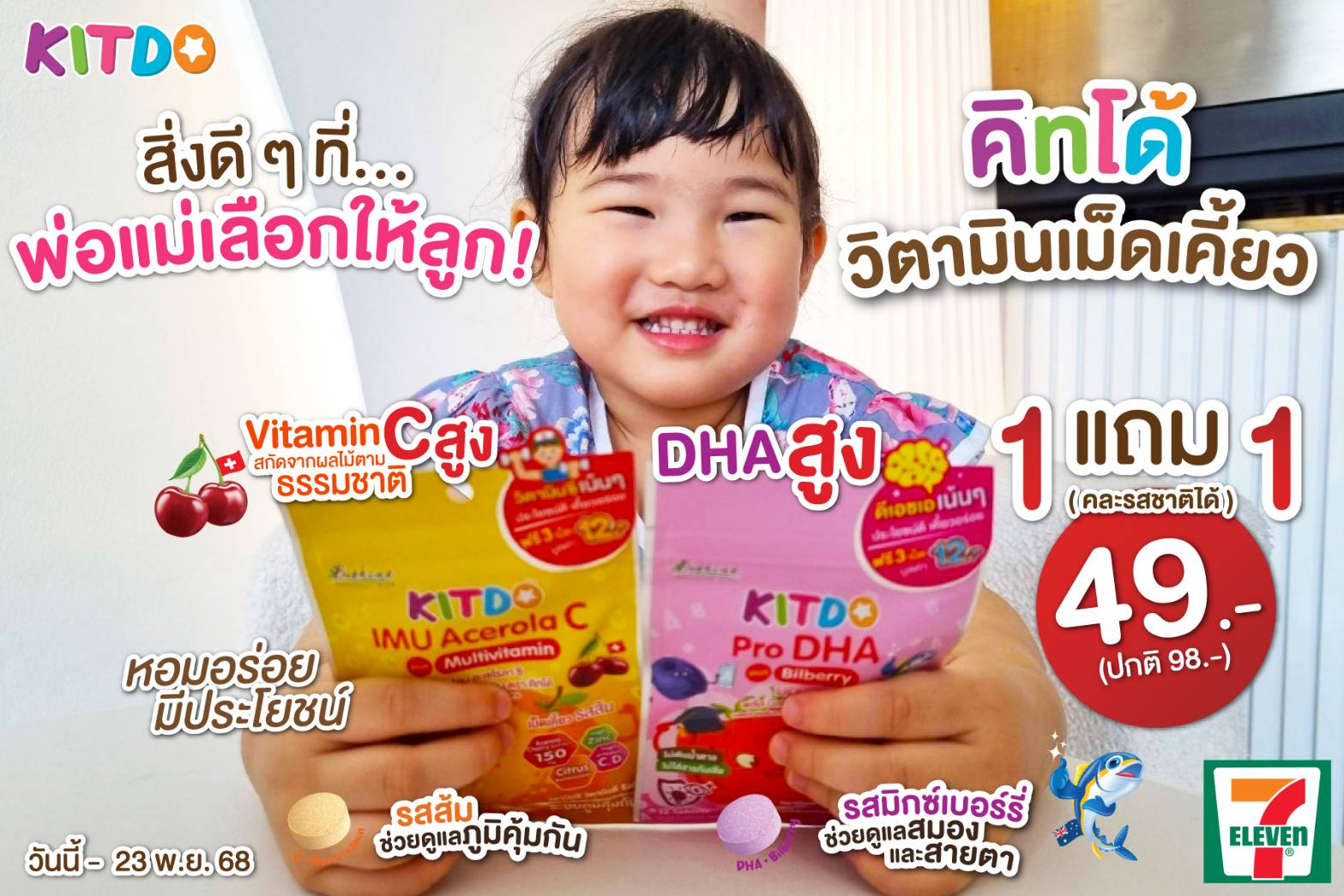 "คิทโด้" วิตามินเม็ดเคี้ยว 2 สูตร 2 รสชาติสุดอร่อย! เป็นทางเลือกที่ดีของลูก และเป็นตัวช่วยที่ลงตัวของผู้ปกครองในการสร้างภูมิคุ้มกันและพัฒนาการทางสมองของเด็กๆ จัดโปรสุดคุ้ม 1 แถม 1 พิเศษ 49 บาท ที่เซเว่น อีเลฟเว่น