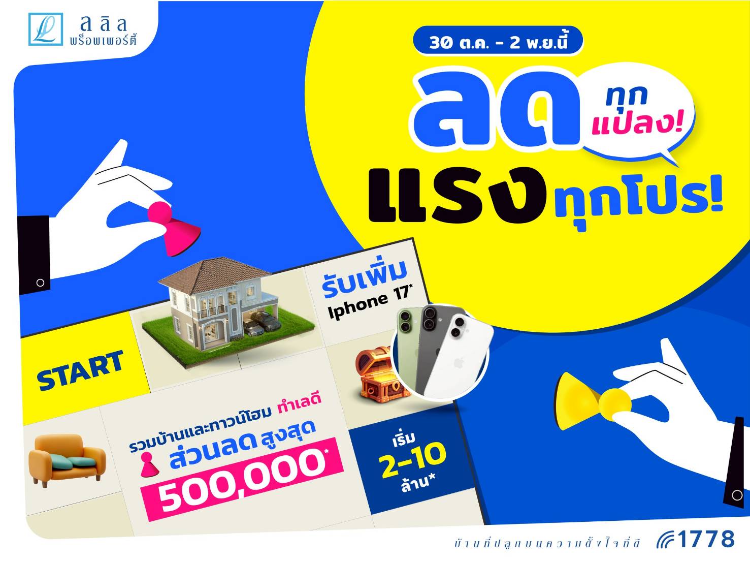 สำหรับผู้ที่กำลังมองหาบ้านคุณภาพ ลลิล พร็อพเพอร์ตี้ พร้อมมอบข้อเสนอพิเศษภายในงาน “มหกรรมบ้านและคอนโด ครั้งที่ 48” ระหว่าง 30 ตุลาคม - 2 พฤศจิกายน 2568 ณ ศูนย์การประชุมแห่งชาติสิริกิติ์ ด้วยส่วนลดสูงสุด 500000 บาท และรับเพิ่ม iPhone 17 มูลค่า 29900 บาท สำหรับผู้ที่จองภายในงาน