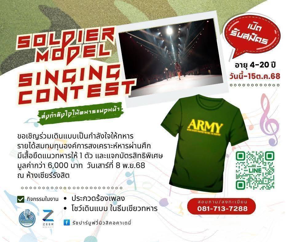สายสีแดง ร่วมกับโรงเรียนสอนดนตรี และเซียร์รังสิต จัดกิจกรรมประกวดร้องเพลงธีมทหารเพื่อส่งมอบกำลังใจไปให้ทหารชายแดน ชิงของรางวัลกว่า 50000 บาท และ Gift Set จาดรถไฟฟ้าสายสีแดง ในวันที่ 8 พย. 68 สมัครฟรี ไม่มีค่ามีค่าใช้จ่ายครับ