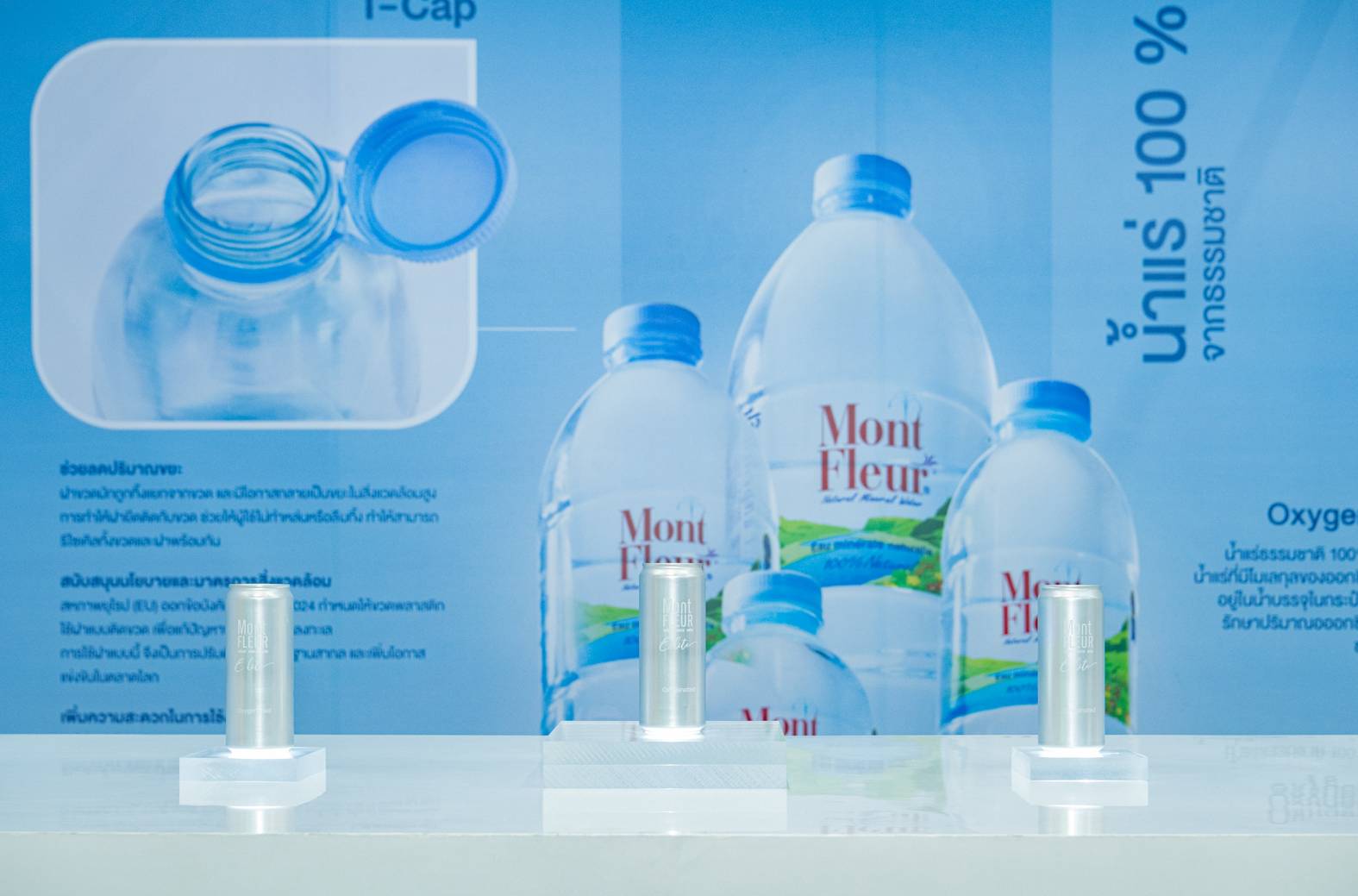 สำหรับอีกหนึ่งบรรจุภัณฑ์ที่เปิดตัวคือ 2.Mont Fleur PET ฝา Tethered Cap “น้ำแร่มองต์เฟลอ ขวด PET ฝา Tethered Cap” ก้าวใหม่ของน้ำแร่กับบรรจุภัณฑ์ที่ใส่ใจรักษ์โลก มองต์เฟลอพัฒนาผลิตภัณฑ์ภายใต้วิสัยทัศน์ความยั่งยืน โดยเปลี่ยนมาใช้ฝาแบบติดกับขวด เพื่อลดปริมาณขยะ ลดปัญหาฝาพลาสติกหล่นหาย และช่วยให้รีไซเคิลขวดพร้อมฝาได้ทั้งชิ้น ถือเป็นการปรับตัวตามมาตรฐานสากล EU Single-Use Plastics Directive 2024