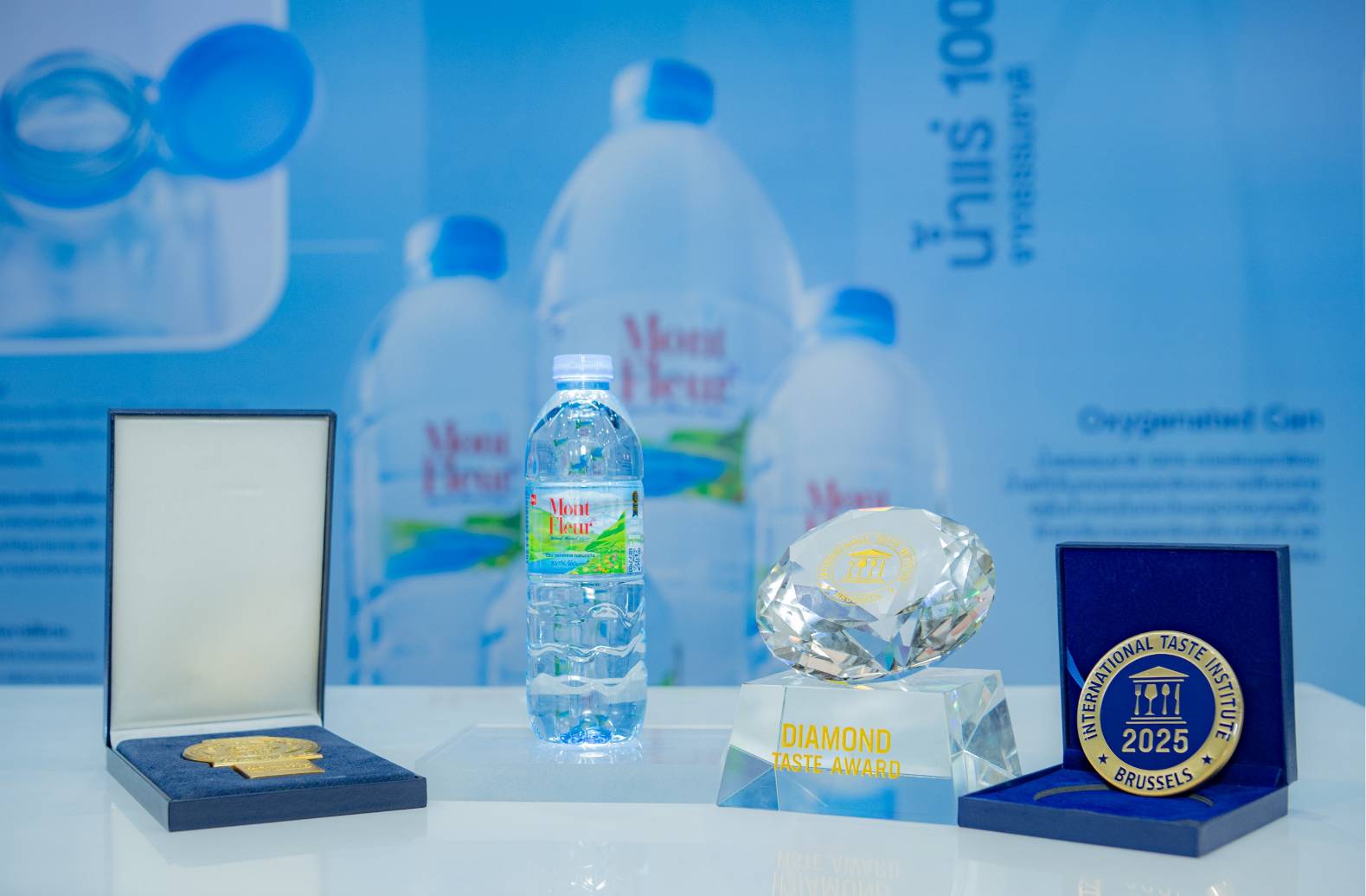ตอกย้ำและการันตีความเป็นน้ำแร่รางวัลรสชาติยอดเยี่ยมและคุณภาพระดับโลกน้ำแร่ธรรมชาติ 100% ของมองต์เฟลอ ด้วยรางวัล Superior Taste Award 8 ปีซ้อน และ Diamond Taste Award 2024
