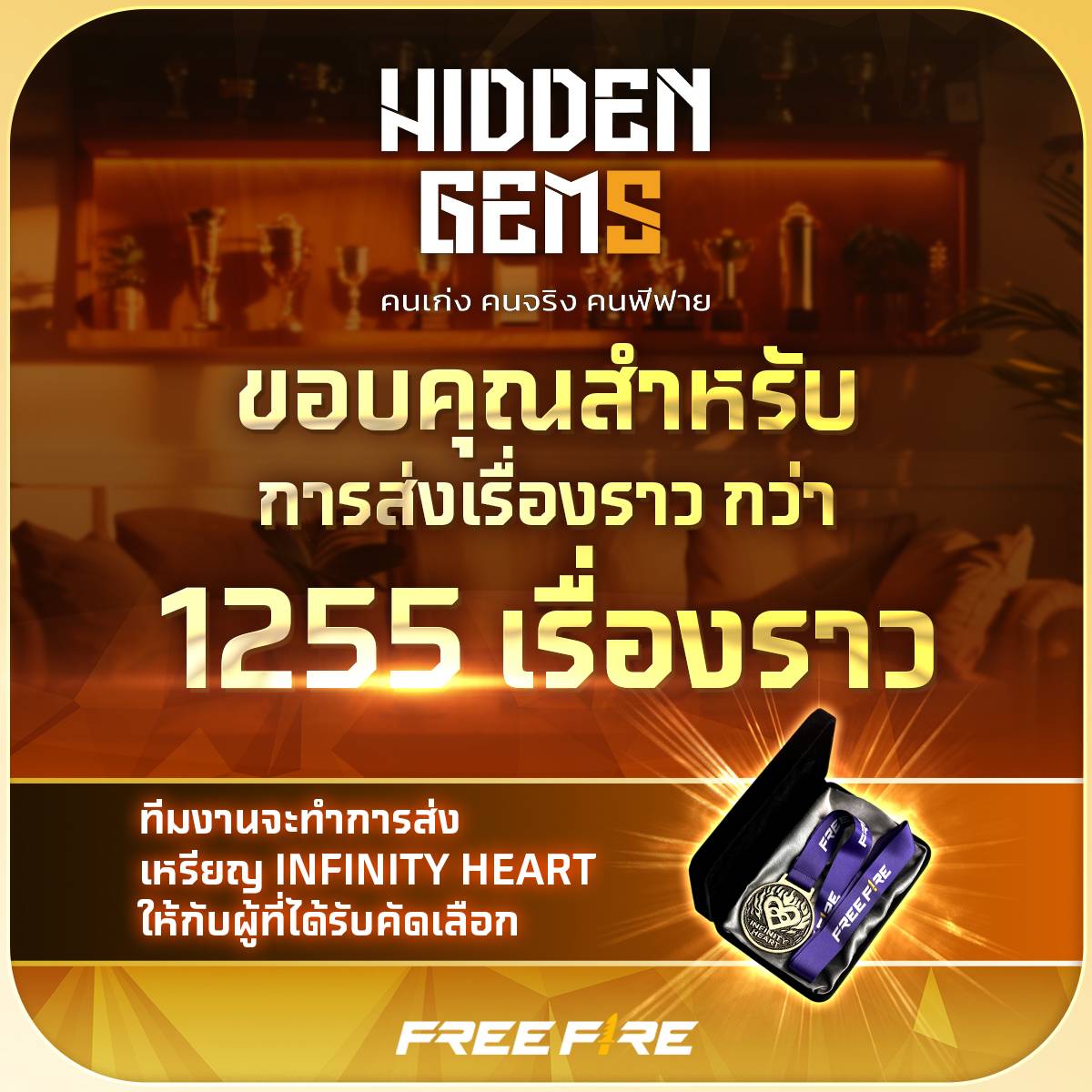 แคมเปญ “Hidden Gems: คนเก่ง คนจริง คนฟีฟาย” ได้รับการตอบรับอย่างล้นหลามจากชุมชนผู้เล่น Free Fire ทั่วประเทศที่นำเสนอเรื่องราวเพื่อรับเหรียญ “Free Fire Infinity Heart” อันทรงเกียรติ โดยในจำนวนนี้มีเรื่องราวน่าประทับใจในหมวดต่าง ๆ ดังนี้