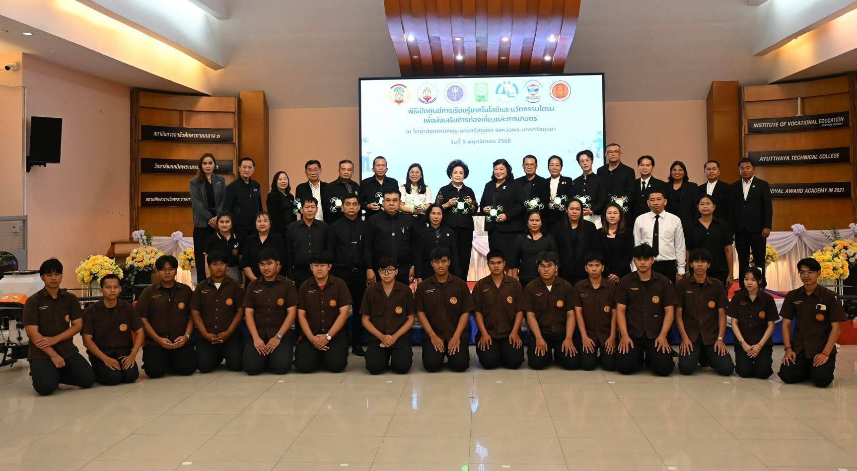 วันที่ 6 พฤศจิกายน 2568 สำนักงานการวิจัยแห่งชาติ(วช.) กระทรวงการอุดมศึกษา วิทยาศาสตร์ วิจัยและนวัตกรรม โดย ดร.วิภารัตน์ ดีอ่อง ผู้อำนวยการสำนักงานการวิจัยแห่งชาติ เป็นประธานในพิธีเปิด “ศูนย์การเรียนรู้เทคโนโลยีและนวัตกรรมโดรนเพื่อส่งเสริมการท่องเที่ยวและการเกษตร” โดยมี นางสมทรง พันธุ์เจริญวรกุล นายกองค์การบริหารส่วนจังหวัดพระนครศรีอยุธยา ร่วมในพิธีเปิด พร้อมด้วยนางสาวมยุรี ศรีระบุตร ผู้อำนวยการวิทยาลัยเทคนิคพระนครศรีอยุธยา นางสาวนปภา สังฆโสภณ รองผู้อำนวยการการท่องเที่ยวแห่งประเทศไทยสำนักงานพระนครศรีอยุธยา อาจารย์พิศิษฐ์ มิตรเกื้อกูล นายกสมาคมกีฬาเครื่องบินจำลองและวิทยุบังคับ พร้อมด้วยคณะผู้บริหาร ภาคีเครือข่าย สื่อมวลชน และแขกผู้มีเกียรติ เข้าร่วมในพิธี ณ วิทยาลัยเทคนิคพระนครศรีอยุธยา จังหวัดพระนครศรีอยุธยา