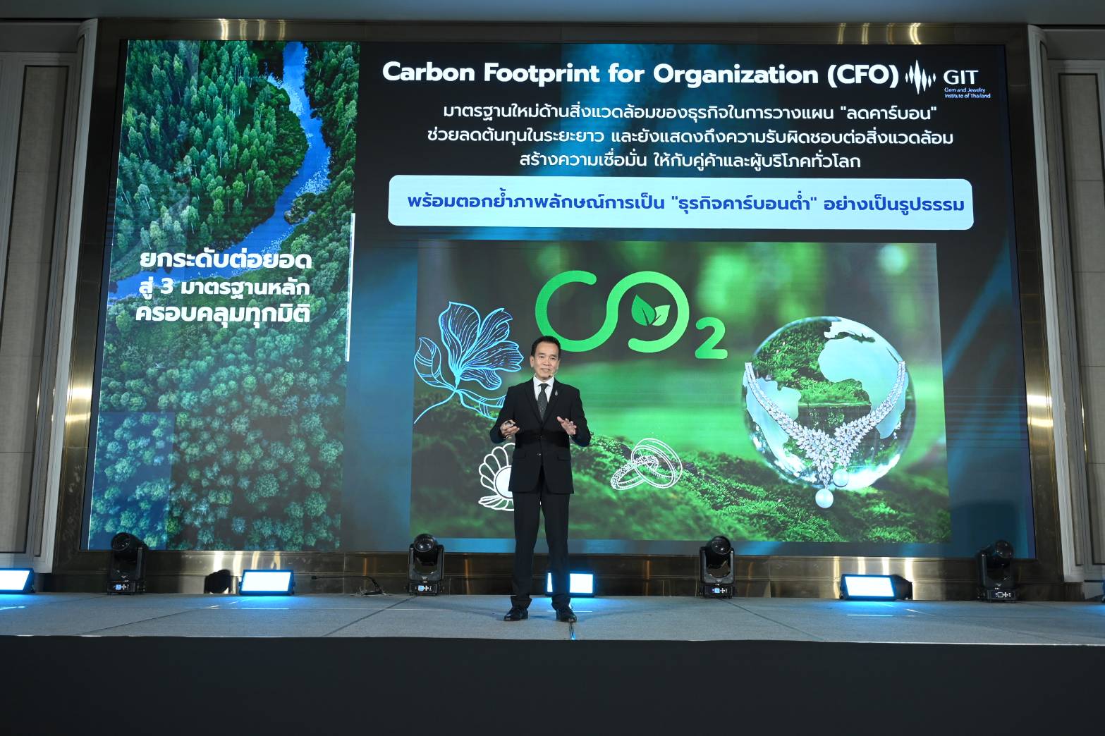 • Carbon Footprint for Organization (CFO) ซึ่งจะเป็นอีกหนึ่งก้าวสำคัญของอุตสาหกรรมอัญมณีไทยในการมุ่งสู่การเป็นอุตสาหกรรมคาร์บอนต่ำ โดยวัดผลด้านสิ่งแวดล้อมอย่างเป็นรูปธรรม พร้อมตอบสนองเป้าหมาย SDGs ของประเทศ