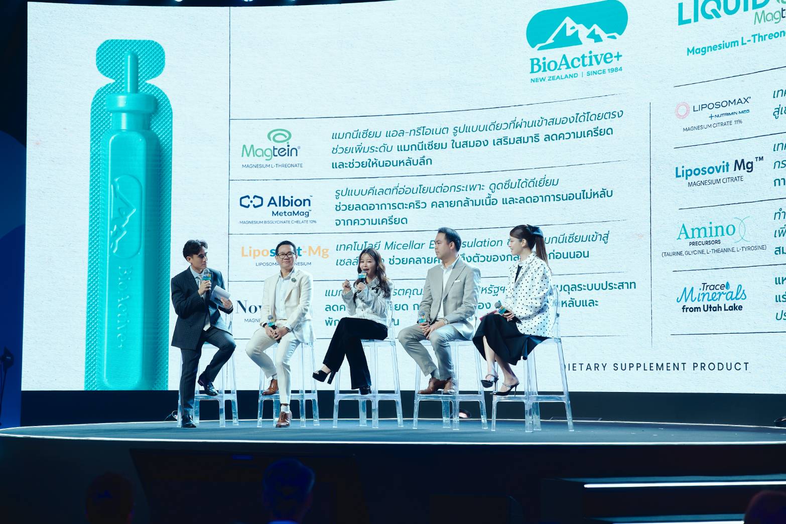 งานเปิดตัวสุดยิ่งใหญ่จัดขึ้นในงาน "Cognitive Longevity: The Science Behind" โดยได้รับเกียรติจาก ดร.วาสนา อินทะแสง Founder BioActive Thailand คุณจี๋ - สุทธิรักษ์ ทรัพย์วิจิตร (Co-founder BioActive Thailand) และ Dr.Rafea Naffa R&D Director at Threotech LLC For Magtein รวมถึงผู้เชี่ยวชาญด้านเวชศาสตร์ชะลอวัยและฟื้นฟูสุขภาพ "ผศ.นพ. มาศ ไม้ประเสริฐ" และ อาจารย์ ผศ.ดร. เอกราช บำรุงพืชน์ นอกจากนี้ยังมี เภสัชกร ณัฐชาศิษฐ์ พงศ์เขตกิจ ผู้เชี่ยวชาญด้านด้านการพัฒนาผลิตภัณฑ์ด้านสุขภาพและความงาม มาร่วมแบ่งปันประสบการณ์ตรงในการ "จัดการความเครียด" ในชีวิตจริงที่ต้องเผชิญกับแรงกดดันสูง