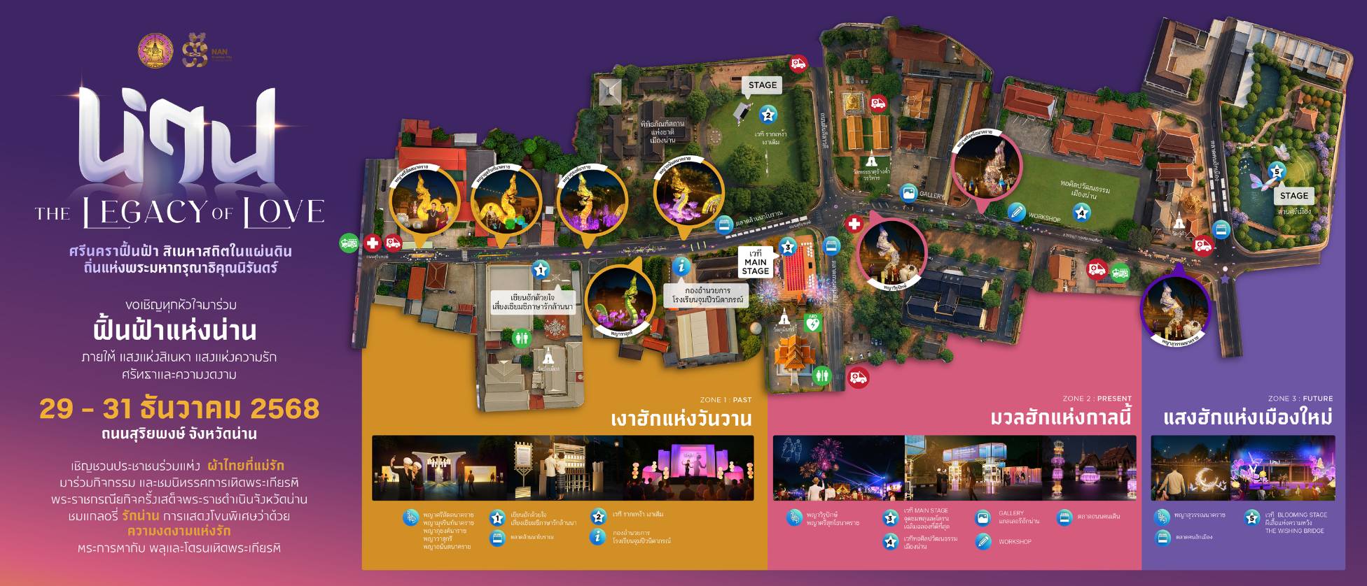 ‘น่าน’ จัดยิ่งใหญ่ THE LEGACY OF LOVE ศรีนคราฟื้นฟ้า สิเนหาสถิตในแผ่นดิน น้อมรำลึกสมเด็จพระพันปีหลวง ชวนสัมผัส 3 โซนแห่งสิเนหา ส่งท้ายปี