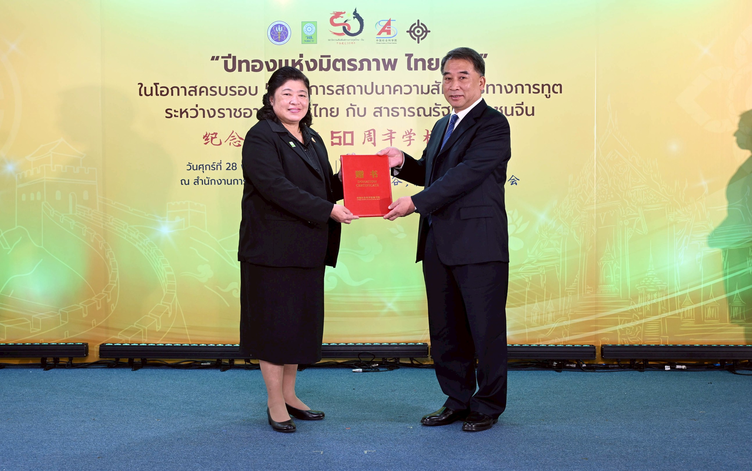 เมื่อวันที่ 28 พ.ย. นายสุรศักดิ์ พันธ์เจริญวรกุล รัฐมนตรีว่าการกระทรวงการอุดมศึกษา วิทยาศาสตร์ วิจัยและนวัตกรรม (อว.) เป็นประธานเปิดงาน “ปีทองแห่งมิตรภาพ ไทย–จีน” เนื่องในโอกาสครบรอบ 50 ปี การสถาปนาความสัมพันธ์ทางการทูตระหว่างประเทศไทยและสาธารณรัฐประชาชนจีน พร้อมกล่าวปาฐกถาพิเศษในหัวข้อ “ไทย–จีน สานพลังขับเคลื่อนอนาคตด้วยวิทยาศาสตร์ วิจัย และนวัตกรรม” โดยมี ศ.เกา เสียง ประธานสถาบันสังคมศาสตร์จีน (CASS) เป็นประธานร่วมเปิดงาน และมี ดร. วิภารัตน์ ดีอ่อง ผู้อำนวยการสำนักงานการวิจัยแห่งชาติ คณะผู้บริหารสำนักงานการวิจัยแห่งชาติ ข้าราชการ และเจ้าหน้าที่ เข้าร่วม ณ สำนักงานการวิจัยแห่งชาติ