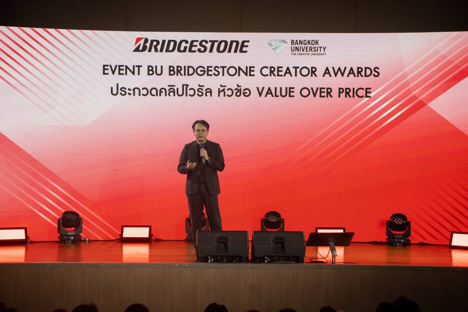 คุณโชทาโร่ คิตะมุระ ผู้อำนวยการสายงานธุรกิจยางรถยนต์นั่งและรถบรรทุกขนาดเล็ก บริษัทบริดจสโตนเซลส์ (ประเทศไทย) จำกัด กล่าวว่า “ปัจจุบันคนรุ่นใหม่ให้ความสนใจเป็นอย่างมากกับการสร้างสรรค์คอนเทนต์ ผมรู้สึกยินดีที่ได้เห็นพลังความคิดสร้างสรรค์ของน้องๆ นักศึกษา บริดจสโตนต้องการเป็นส่วนหนึ่งในการสนับสนุนให้เด็กรุ่นใหม่ได้พัฒนาทักษะอย่างเต็มศักยภาพ เพราะเวทีนี้ไม่ใช่แค่การแข่งขัน แต่เป็นโอกาสเตรียมความพร้อมให้พวกเขาก้าวสู่เส้นทางอาชีพในอนาคตอย่างมั่นใจเราเชื่อว่าคนรุ่นใหม่คือพลังสำคัญที่จะขับเคลื่อนนวัตกรรมและการเดินทางซึ่งสอดคล้องกับเป้าหมายของบริดจสโตนที่มุ่งมั่นพัฒนาผลิตภัณฑ์ บริการ และโซลูชั่น พร้อมเดินหน้าสร้างประสบการณ์และกิจกรรมการตลาดออนไลน์อย่างต่อเนื่องเพื่อตอบรับกับไลฟ์สไตล์การเดินทางของคนรุ่นใหม่อย่างแท้จริง”