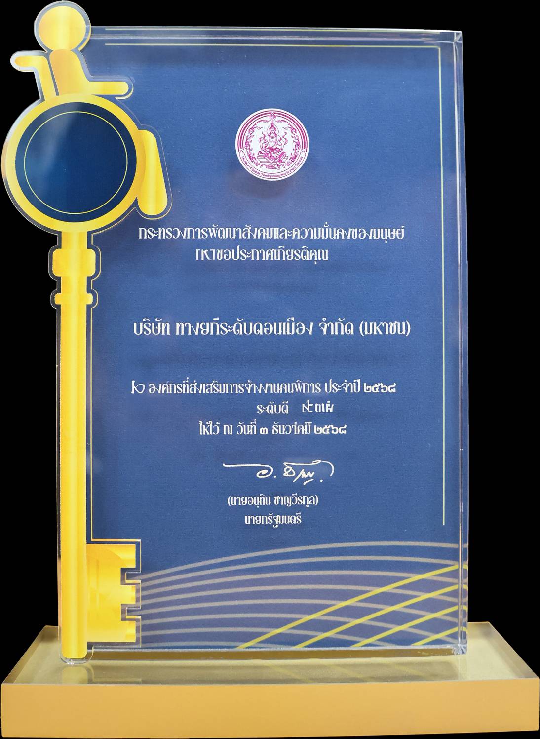 บริษัท ทางยกระดับดอนเมือง จำกัด (มหาชน) (DMT) เข้ารับประกาศเกียรติคุณรางวัล “องค์กรที่ส่งเสริมการจ้างงานคนพิการ ประจำปี 2568 “ ระดับดี ” จากกรมส่งเสริมและพัฒนาคุณภาพชีวิตคนพิการ ร่วมกับสมาคมคนพิการทุกประเภทแห่งประเทศไทย องค์กรคนพิการแต่ละประเภท และภาคีเครือข่ายทุกภาคส่วน ซึ่งจัดขึ้นในงานวันคนพิการสากล ประจำปี 2568 เมื่อวันที่ 3 ธันวาคม 2568 ณ ห้องรอยัล จูบิลี บอลรูม อิมแพ็ค เมืองทองธานี จังหวัดนนทบุรี