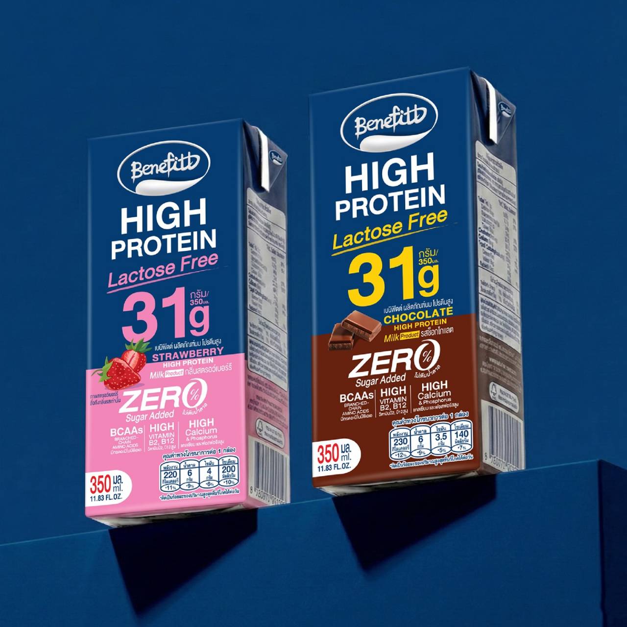 เราพัฒนาสูตรนมยูเอชทีโปรตีนสูงที่ให้โปรตีน 31 กรัมต่อกล่อง ในปริมาณ 350 มิลลิลิตร ไม่เติมน้ำตาลทราย ปราศจากแลคโตส มี BCAAs วิตามิน B2 และ B12 มีแคลเซียมและฟอสฟอรัสสูง ไม่ต้องแช่เย็น สินค้ามีอายุ 6 เดือน โดยยังรักษาคุณค่าทางโภชนาการไว้ได้อย่างครบถ้วน สะดวกในการดื่มด้วยหลอดขนาดใหญ่พิเศษ เพื่อให้ผู้บริโภคดื่มได้ง่าย ดื่มทันทีไม่ต้องแช่ ไม่ต้องชง โดยกระจายสินค้าครอบคลุมทั่วประเทศผ่านร้านสะดวกซื้อ 7-Elven ทุกสาขา เพื่อให้ผู้บริโภคสามารถดื่มและสัมผัสประสบการณ์ความอร่อยกลมกล่อมของเบนิฟิตต์ ไฮโปรตีน แลคโตสฟรี ได้อย่างสะดวก”