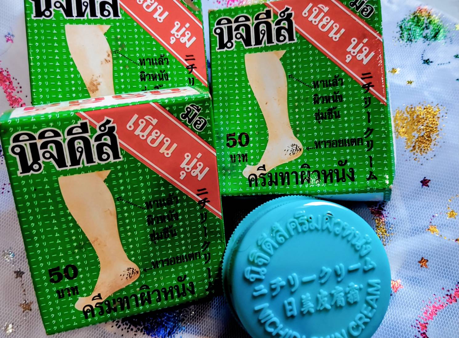 ความนิยมตลับสีฟ้า ภายใต้ กล่อง สีเขียว รูปขา นิจิดีส์ครีม ได้แสดงศักยภาพ ไปถึงต่างประเทศ ทั่วโลก ด้วยคุณภาพที่มีประสิทธิภาพ นิจิดีส์ครีม จึงเป็นครีมที่อยู่คู่ควร ติดกระเป๋า และ ติดบ้าน ไว้ เป็นประจำ คุณสามารถ ทา ส้นเท้า ที่แตก แห้ง ได้ทุกๆวัน หรือ ที่ ผิวมือของคุณ ถึงแม้คุณจะไม่มีปัญหา ใด ๆ ครีมนี้ ควรใช้ เพื่อ เป็นเกราะป้องกันผิว ไม่ให้ แตก แห้ง มีจุดด่างดำได้ง่าย จะช่วยให้ผิวยืดหยุ่น ชุ่มชื้นตลอดวัน แม้ ผิวต้องเผชิญ กับ น้ำ แสงแดด น้ำยาล้างจาน ผงซักฟอก การใช้มือ จับส่ิงของบ่อยๆ ส้นเท้า ที่ผิวแห้ง แตก และไม่ว่า คุณจะเป็นใคร นักกีฬา เกษตรกร ผู้ทำงานค้าขาย หรือ ผู้ทำงานในสำนักงานที่ต้องอยู่กับเครื่องปรับอากาศ และ อุณภูมิที่เปลี่ยนแปลง นิจิดีส์ครีมจึงเป็นครีมที่เหมาะสมที่สุด