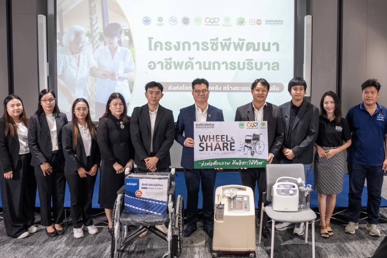 พร้อมกันนี้ ในปี 2568 มูลนิธิฯ ร่วมกับภาคีเครือข่าย ได้แก่ มูลนิธิเส้นด้าย และกลุ่มธุรกิจในเครือซีพี Ascend Commerce True ส่งมอบโครงการ Wheel Share Share The Ability ส่งต่อศักยภาพ คืนอิสระให้ชีวิต เพื่อสร้างการมีส่วนร่วมจากประชาชน ผ่านการเปิดรับบริจาคผ่านแอปพลิเคชัน Amaze และ TrueMoney Wallet นำไปจัดซื้อและส่งมอบรถเข็น (Wheelchair) และอุปกรณ์ทางการแพทย์ที่จำเป็น โดยมี คุณคริส โปตระนันท์ ประธานมูลนิธิเส้นด้าย เป็นผู้แทนรับมอบ เพื่อนำไปใช้ประโยชน์กับชุมชนกลุ่มเปราะบางและผู้ที่ต้องการความช่วยเหลืออย่างแท้จริง อาทิ ผู้สูงอายุที่ติดบ้าน ติดเตียง และกลุ่มเปราะบางที่ขาดแคลนอุปกรณ์ทางการแพทย์