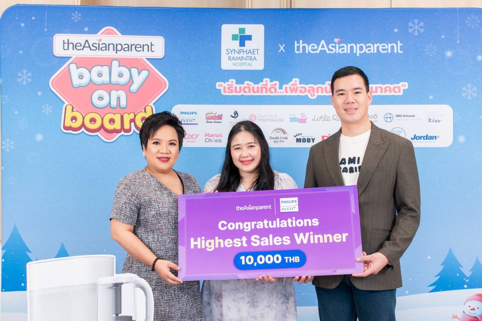ส่วนรางวัลใหญ่ Highest Sales (ยอดขายสูงสุด) ที่แข่งขันกันอย่างเข้มข้นต่อเนื่องจนถึงวันที่ 31 ตุลาคม 2568 ได้แก่ คุณแม่วรีรักษ์ ติ้นสกุล ซึ่งได้รับมอบรางวัลในงาน Baby On Board ครั้งที่ 4 ณ โรงพยาบาลสินแพทย์ รามอินทรา เป็นที่เรียบร้อยแล้ว เมื่อวันที่ 13 ธันวาคม 2568