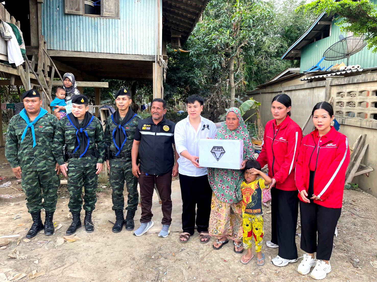 ในครั้งนี้ เจแอนด์ที เอ็กซ์เพรส ร่วมกับภาคีเครือข่ายภาคสังคม อาทิ สมาคมเพื่อนนักดำน้ำสายรุ้ง ภาคประชาชน และภาคเอกชน จัดส่งอาหาร น้ำดื่ม ยาและเวชภัณฑ์ เครื่องนุ่งห่ม รวมถึงของใช้จำเป็นจำนวนมาก เพื่อช่วยเหลือประชาชนในอำเภอสะบ้าย้อย และพื้นที่ใกล้เคียง จังหวัดสงขลา โดยบริษัทฯ สนับสนุนด้านการขนส่งและการบริหารจัดการโลจิสติกส์ เพื่อให้ความช่วยเหลือเข้าถึงพื้นที่ได้อย่างรวดเร็วและมีประสิทธิภาพ โดยมีหน่วยทหารเฉพาะกิจ ฉก.40 เป็นผู้แทนรับมอบ พร้อมด้วยทีมงานเจแอนด์ที เอ็กซ์เพรส และผู้แทนจากสมาคมเพื่อนนักดำน้ำสายรุ้ง ร่วมลงพื้นที่แจกจ่ายสิ่งของแก่ผู้ประสบภัยในพื้นที่ด้วยตนเอง