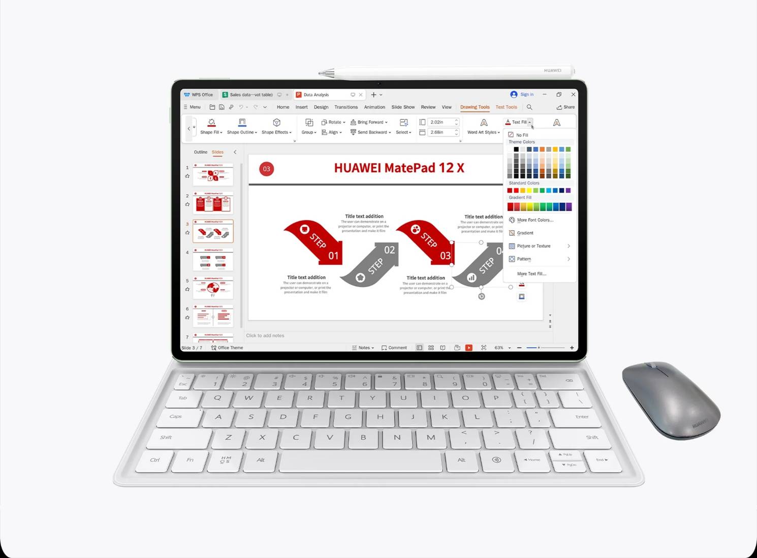 HUAWEI MatePad 12 X (2026) ยกระดับการทำงานบนแท็บเล็ตให้เหนือชั้นด้วย PC-level WPS Office 3.0 ที่ยกฟีเจอร์จากเวอร์ชันพีซีมาแบบครบถ้วน ช่วยให้จัดการไฟล์ Word Excel และ Powerpoint ได้อย่างมืออาชีพ พร้อมความสะดวกในการส่งต่อข้อมูลผ่าน SuperHub และ Cloud Sync ข้ามอุปกรณ์ได้อย่างไร้รอยต่อ นอกจากนี้ยังตอบโจทย์สายจดและสายวาดด้วย HUAWEI Notes เวอร์ชันล่าสุดที่รองรับการแบ่งหน้าจอทำงาน และแอปฯ GoPaint ที่ใช้งานร่วมกับปากกา M-Pencil Pro ได้อย่างอัจฉริยะผ่านปุ่มลัด Star Ring และการสั่งงานด้วยแรงบีบเพื่อเปลี่ยนเครื่องมือ ด้านความบันเทิงและการใช้งานจริงก็โดดเด่นด้วยหน้าจอ Ultra-Clear PaperMatte ขนาด 12 นิ้ว ที่ช่วยลดแสงสะท้อนและรอยนิ้วมือ มอบสัมผัสการเขียนที่เป็นธรรมชาติเหมือนกระดาษจริงพร้อมช่วยถนอมสายตา ปิดท้ายด้วยแบตเตอรี่ความจุสูงถึง 10100 mAh ที่ใช้งานวิดีโอต่อเนื่องได้นาน 14 ชั่วโมง พร้อมรองรับการชาร์จไว HUAWEI SuperCharge ที่ช่วยให้คุณลุยงานและพักผ่อนได้อย่างเต็มที่ตลอดวัน