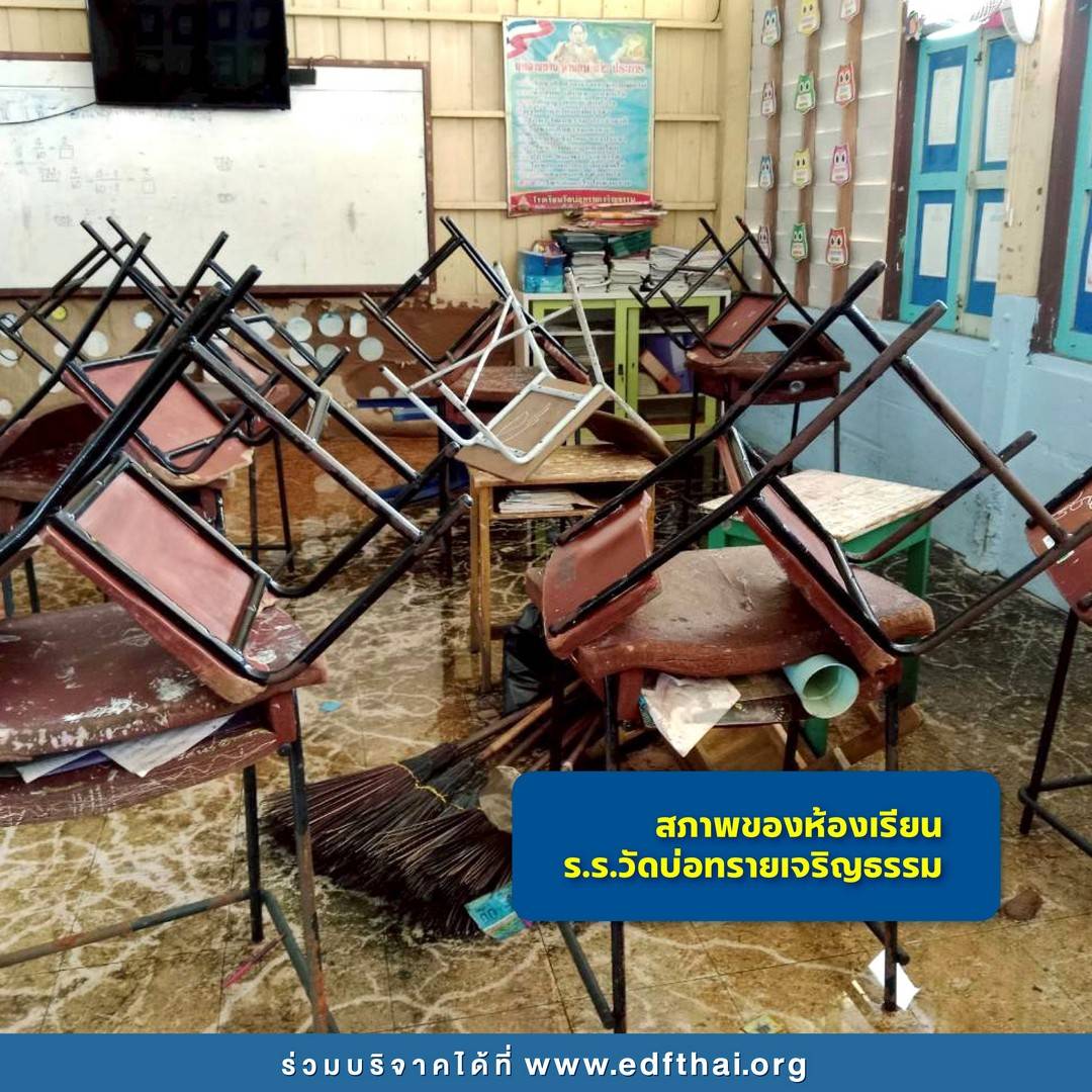 จากสถานการณ์น้ำท่วมในจังหวัดสงขลาในเดือนพฤศจิกายนที่ผ่านมามีความเสียหายเป็นอย่างมากต่อประชาชน รวมถึงโรงเรียน และนักเรียนกว่า 30 โรงเรียน ที่มูลนิธิ EDF (มูลนิธิกองทุนการศึกษาเพื่อการพัฒนา) ได้ทำงานร่วมกันในด้านโครงการทุนการศึกษาและโครงการพัฒนาโรงเรียน โรงเรียนได้รับผลกระทบอย่างหนัก มีความเสียหายอย่างรุนแรง โดยเฉพาะอาคารเรียน ห้องสมุด สภาพห้องเรียนที่ทรุดโทรม โต๊ะ เก้าอี้พังเสียหาย ห้องคอมพิวเตอร์และคอมพิวเตอร์ต่าง ๆ ใช้งานไม่ได้ ห้องน้ำและระบบสาธารณูปโภคไม่สามารถใช้งานได้ รวมถึงบ้านของนักเรียนจำนวนมากถูกน้ำท่วมมิดหลังคา ชุดนักเรียน รองเท้า กระเป๋าเรียน สมุด หนังสือ ถูกน้ำท่วม ได้รับความเสียหายทั้งหมด ปัจจุบันโรงเรียนและนักเรียนยังคงเผชิญกับความยากลำบากแม้ว่าสภาวะน้ำท่วมจะหมดไปแล้วก็ตาม