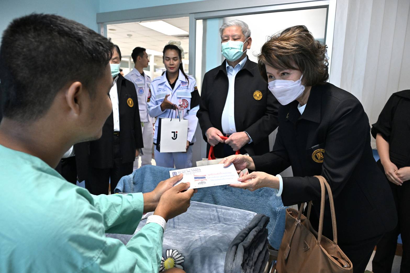 มูลนิธิป่อเต็กตึ๊ง นำกระเช้าเข้าเยี่ยมเยียน พร้อมมอบเงินปลอบขวัญให้กำลังใจแก่ทหารที่ได้รับบาดเจ็บจากเหตุปะทะชายแดนไทย-กัมพูชา ณ โรงพยาบาลพระมงกุฎเกล้า กรุงเทพฯ .