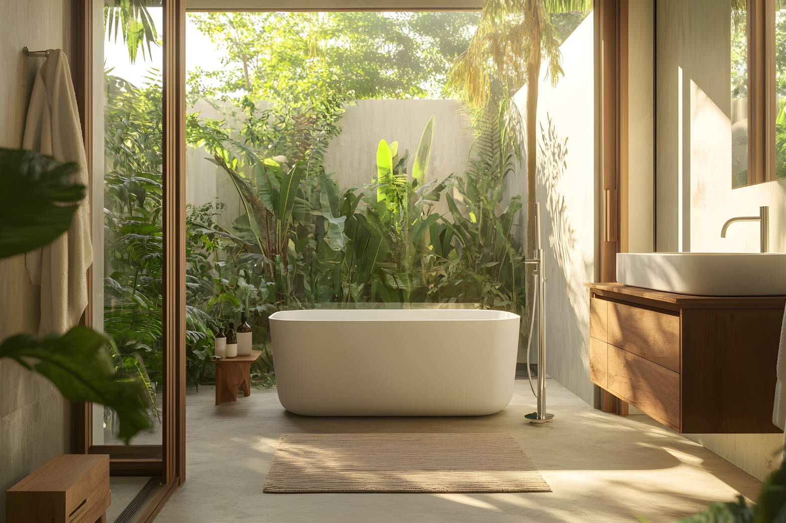 · Biophilic Design ฮีลใจด้วยพันธุ์ไม้ธรรมชาติ การจัดวางต้นไม้ประดับตระกูลไม้ใบหรือการทำสวนแนวตั้ง (Vertical Garden) เป็นอีกเทรนด์การตกแต่งมาแรงจากกระแส Health & Wellness นอกจากสีเขียวของใบไม้จะช่วยเพิ่มความผ่อนคลาย ยังช่วยดักจับฝุ่นและเพิ่มความสดชื่นในห้องน้ำได้อีกด้วย