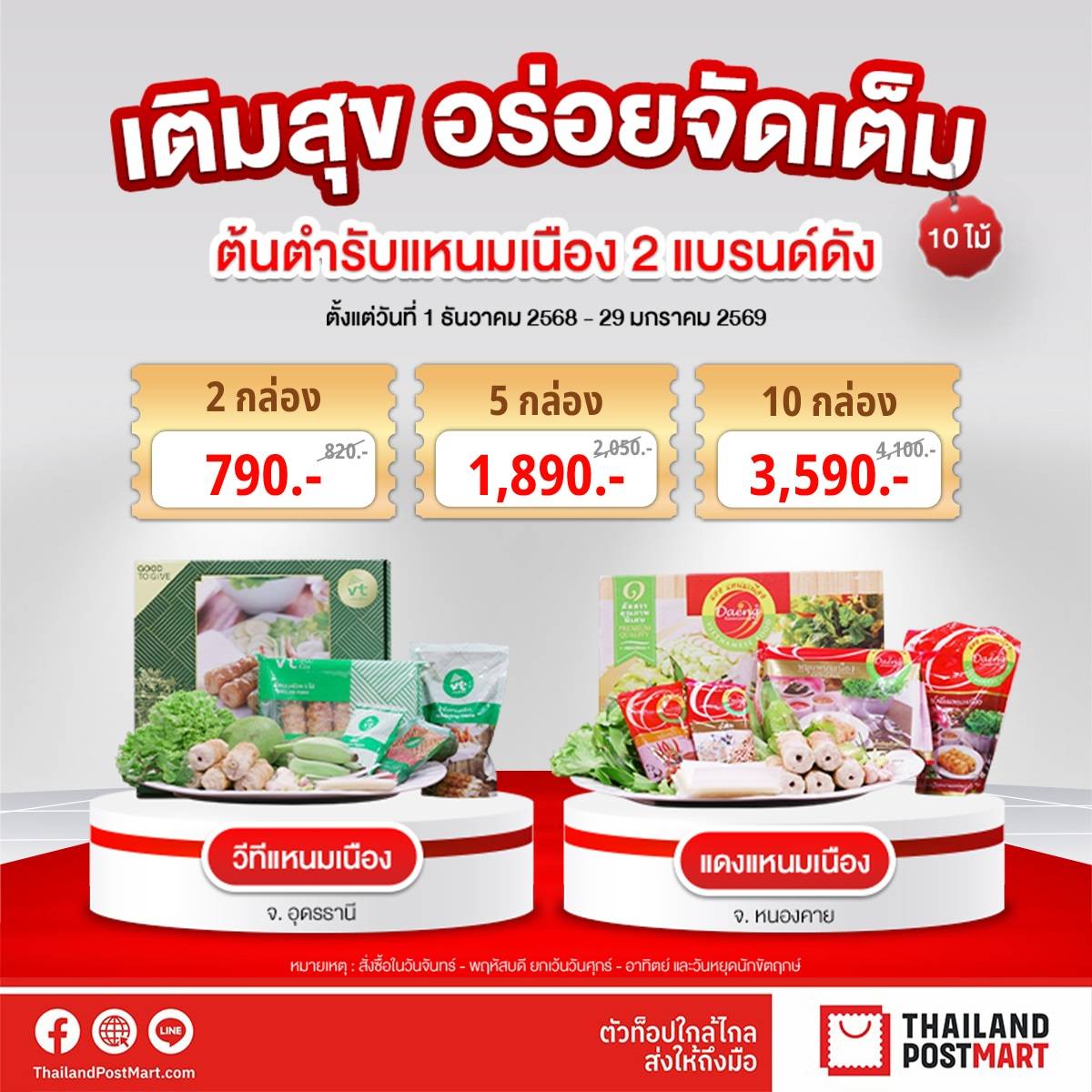 พร้อมเอาใจคนรักแหนมเนืองอย่างต่อเนื่องด้วยโปรโมชัน “เติมสุขอร่อยจัดเต็ม” ช้อปอย่างคุ้มค่าได้ในราคาพิเศษ เมื่อซื้อแหนมเนืองสองแบรนด์ดัง “แดงแหนมเนือง” และ “วีทีแหนมเนือง” สองกล่อง ปกติราคา820 บาท เหลือเพียง 790 บาท ให้คนไทยได้รับความอิ่มอร่อย ส่งตรงรสชาติต้นตำรับถึงหน้าบ้านพร้อมคุ้มค่าทุกการช้อปตั้งแต่วันนี้ - 29 มกราคม 2569